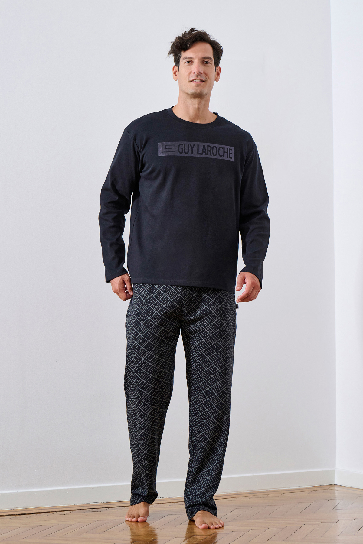 Νέα συλλογή πυτζάμα Guy Laroche. Ανδρική πυτζάμα Guy Laroche, μπλούζα από βαμβακερό ύφασμα με λαιμόκοψη και το λογότυπο Guy Laroche στο στήθος , παντελόνι all over print & logo στο λάστιχο με τσέπες και ίσιο τελείωμα . Απαραίτητη επιλογή για τις χειμερινές σας ώρες ξεκούρασης. Απαλή αίσθηση ζεστασιάς .