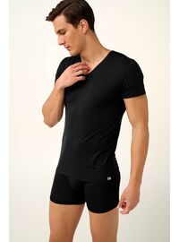 Ανδρικό T-Shirt Just Cavalli - V neck μαύρο - Ροζ τύπωμα
