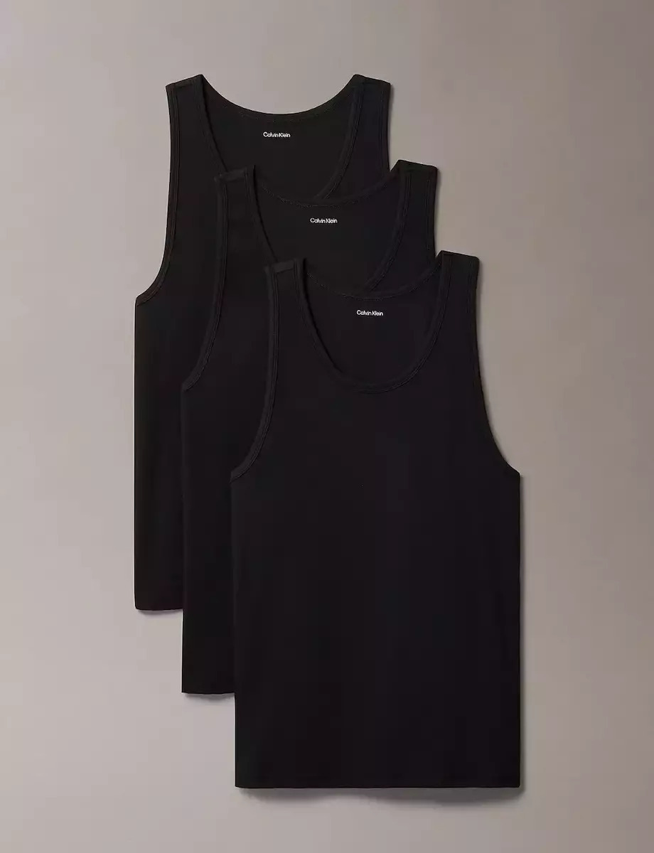 Ανδρικά φανελάκια Calvin Klein - Μαύρα - Tank Top - Αμάνικα - 3 pack - Cotton