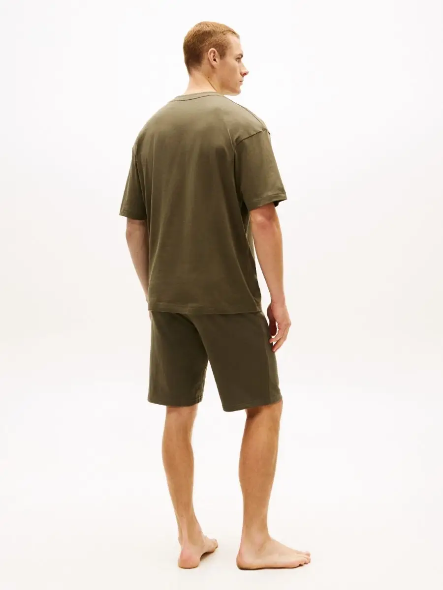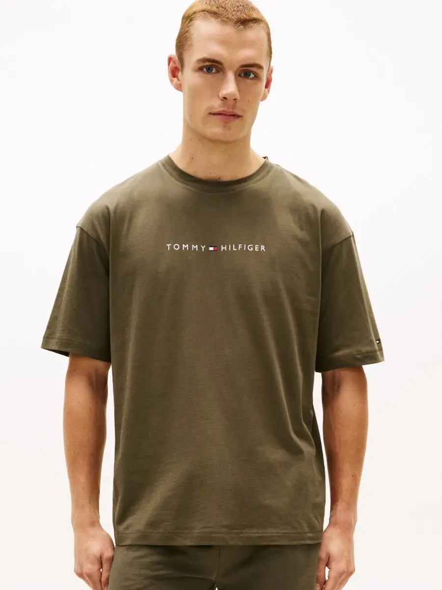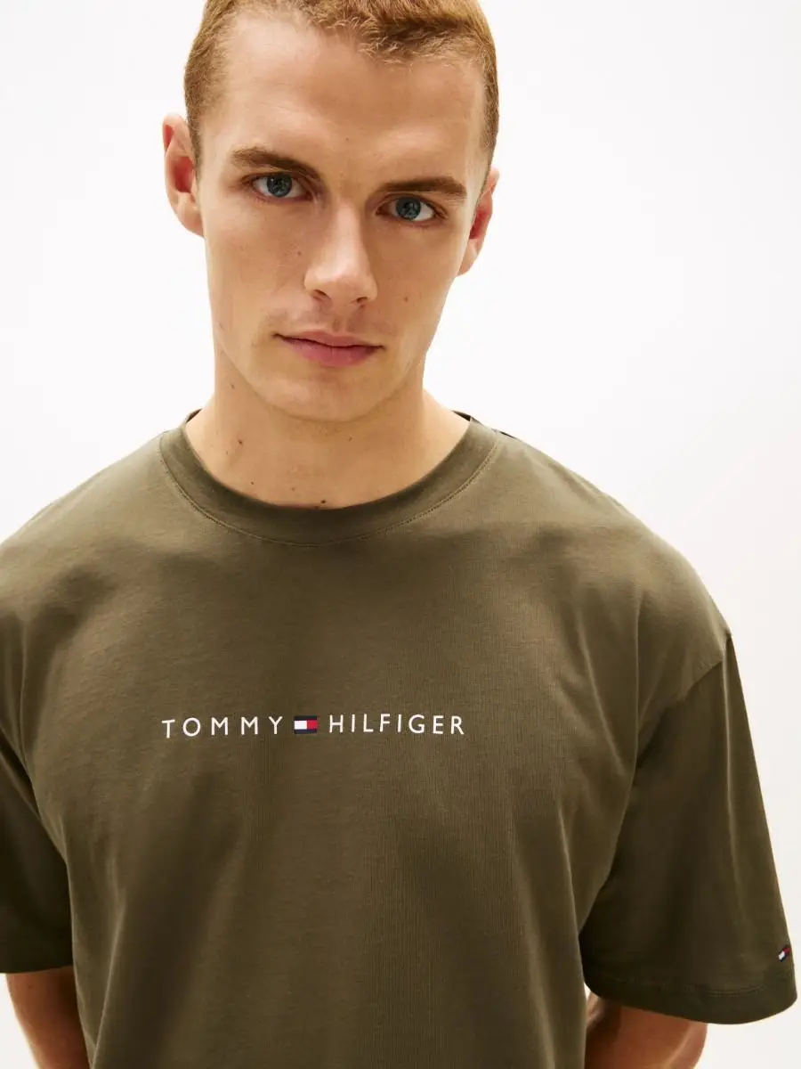 Ανδρικό T-shirt Tommy Hilfiger χακί με κοντό μανίκι και λευκό logo στο στήθος. Κατασκευασμένο από βαμβακερό ύφασμα, υψηλής ποιότητας, που εφαρμόζει άψογα στο σώμα, προσφέροντας, μέγιστη άνεση και απορροφητικότητα. Μπλούζα λαιμόκοψη με μαλακό τελείωμα σε λαιμό και μανίκια για τέλεια εφαρμογή.