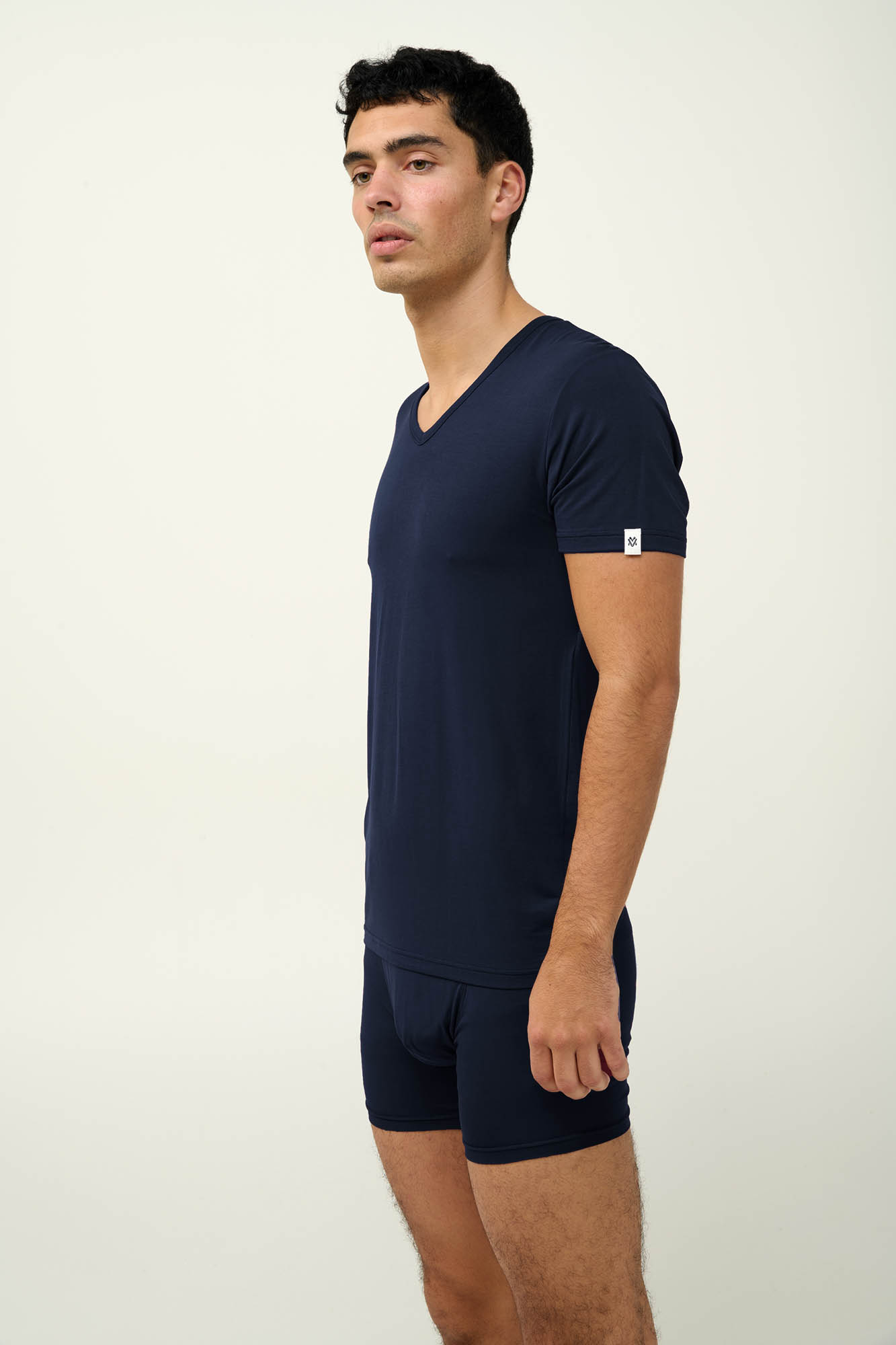 Επιλέξτε ένα μονόχρωμο ανδρικό φανελάκι με κοντά μανίκια και V λαιμόκοψη, που χαρίζει καθημερινή άνεση και πρακτικότητα. Είναι κατασκευασμένο από απαλό LENZING Tencel Modal Micro που προσφέρει απαλή και διαπνέουσα αίσθηση στο δέρμα. Αγκαλιάζει ευχάριστα το σώμα και είναι ιδανικό για layering ή στιγμές χαλάρωσης στο σπίτι.