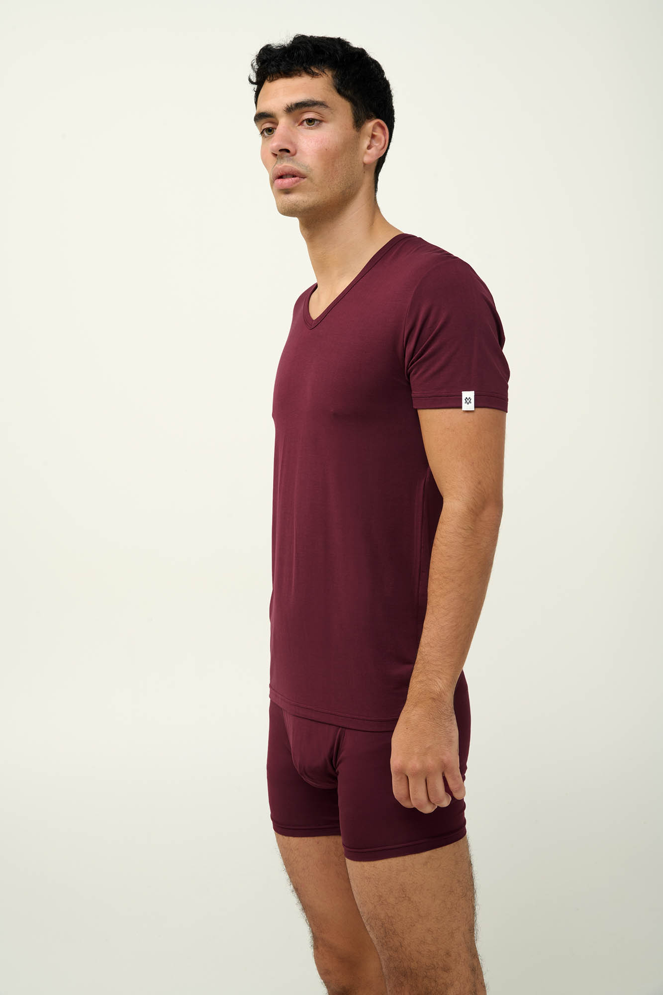 Επιλέξτε ένα μονόχρωμο ανδρικό φανελάκι με κοντά μανίκια και V λαιμόκοψη, που χαρίζει καθημερινή άνεση και πρακτικότητα. Είναι κατασκευασμένο από απαλό LENZING Tencel Modal Micro που προσφέρει απαλή και διαπνέουσα αίσθηση στο δέρμα. Αγκαλιάζει ευχάριστα το σώμα και είναι ιδανικό για layering ή στιγμές χαλάρωσης στο σπίτι.
