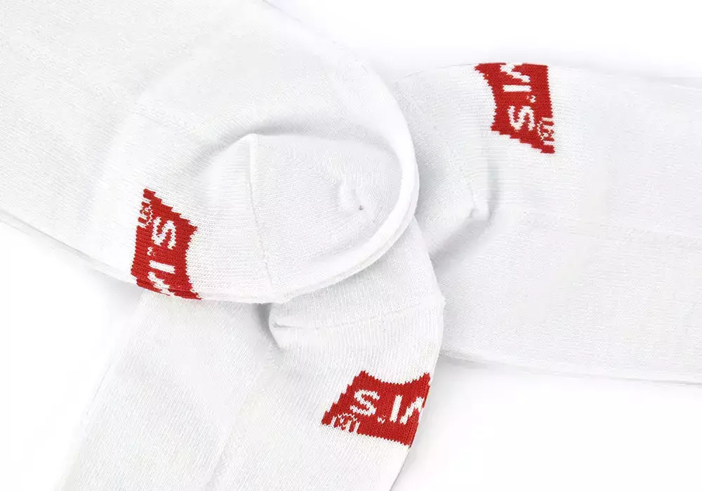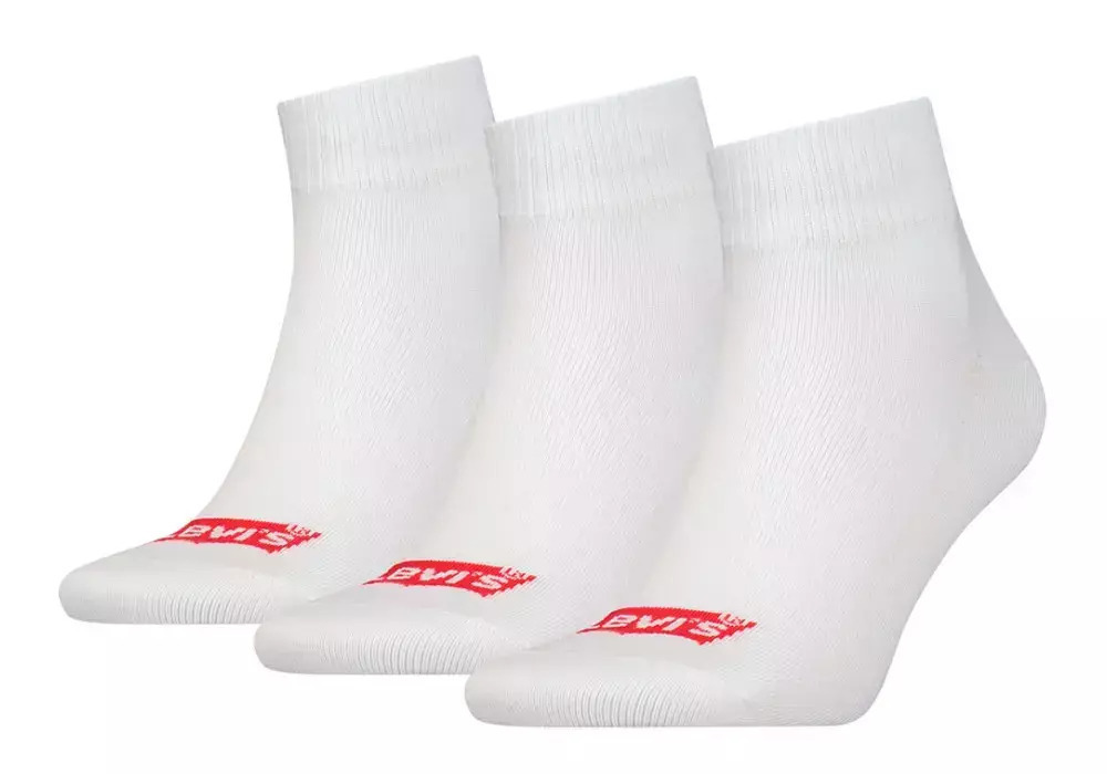 Ανδρικές κάλτσες Levi's ημίκοντες λευκές με logo στα δάχτυλα. Λευκές κάλτσες κοντές από βαμβακερό ύφασμα με απαλή αίσθηση και ειδική πλέξη για να “ανασαίνει” το πόδι, ανθεκτικές με ενίσχυση σε δάκτυλα και φτέρνα, είναι ιδανικές για καθημερινή χρήση.