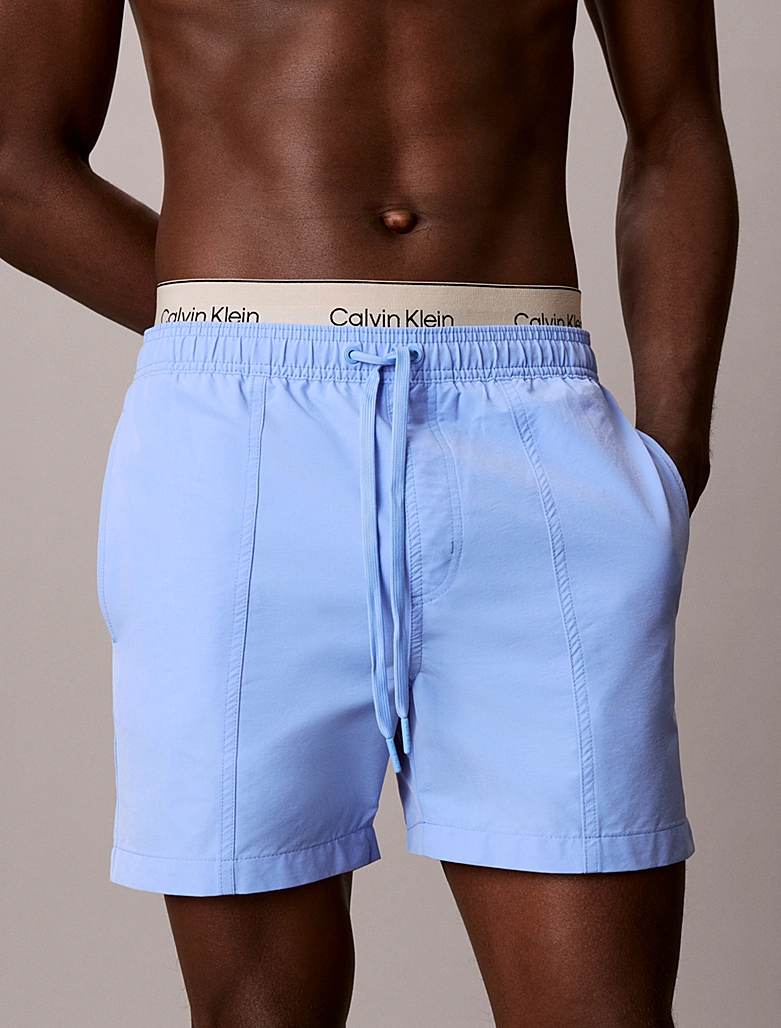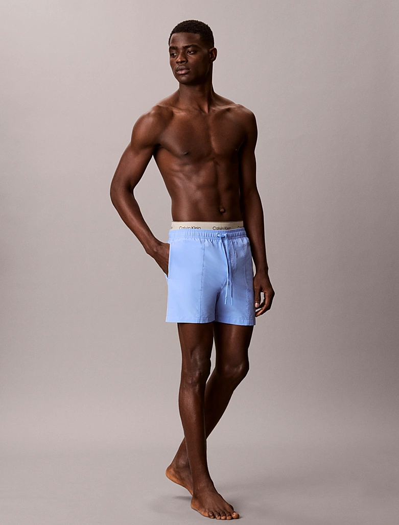 Ανδρικό Μαγιό Calvin Klein - Γαλάζια Βερμούδα Με Διπλό Λάστιχο - Print Logo