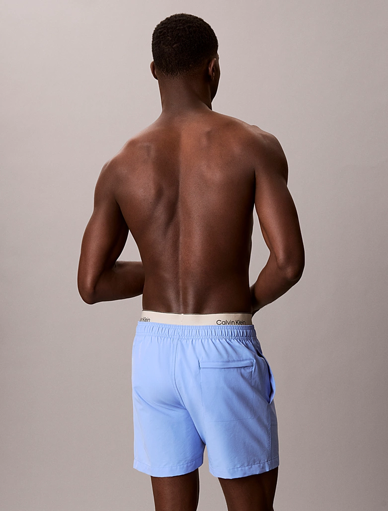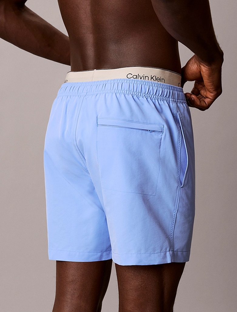 Ανδρικό μαγιό Calvin Klein με τρεις τσέπες με φερμουάρ , λάστιχο και κορδόνι στην μέση που προσφέρει σταθερότητα. Γαλάζιο μαγιό βερμούδα μεσαίου μήκους, με print Logo Calvin klein αριστερά, κατασκευασμένο από υψηλής ποιότητας ανακυκλωμένο υλικό, πολύ μαλακό, στεγνώνει αμέσως και επιτρέπει άνεση κινήσεων.