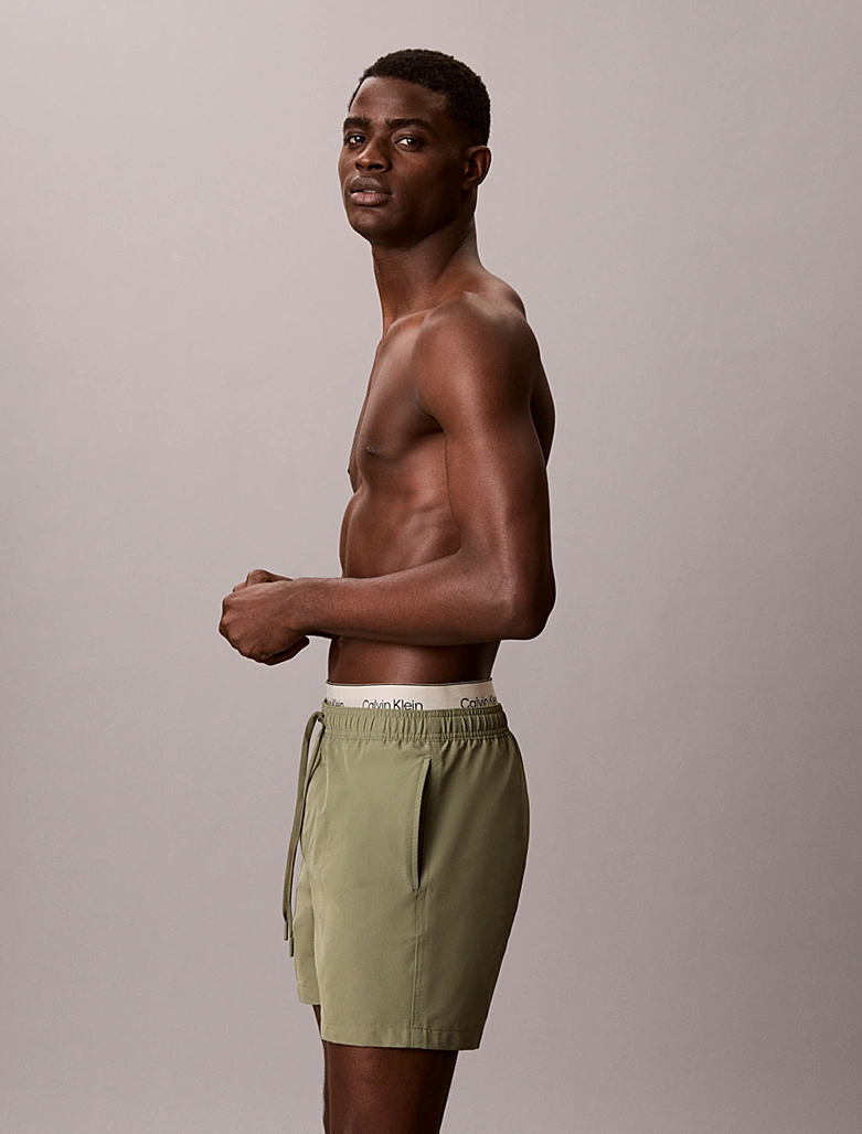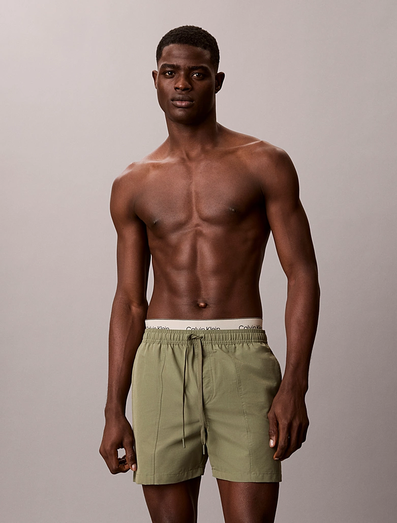 Ανδρικό μαγιό Calvin Klein με τρεις τσέπες με φερμουάρ , λάστιχο και κορδόνι στην μέση που προσφέρει σταθερότητα. Χακί μαγιό βερμούδα μεσαίου μήκους, με print Logo Calvin klein αριστερά, κατασκευασμένο από υψηλής ποιότητας ανακυκλωμένο υλικό, πολύ μαλακό, στεγνώνει αμέσως και επιτρέπει άνεση κινήσεων.