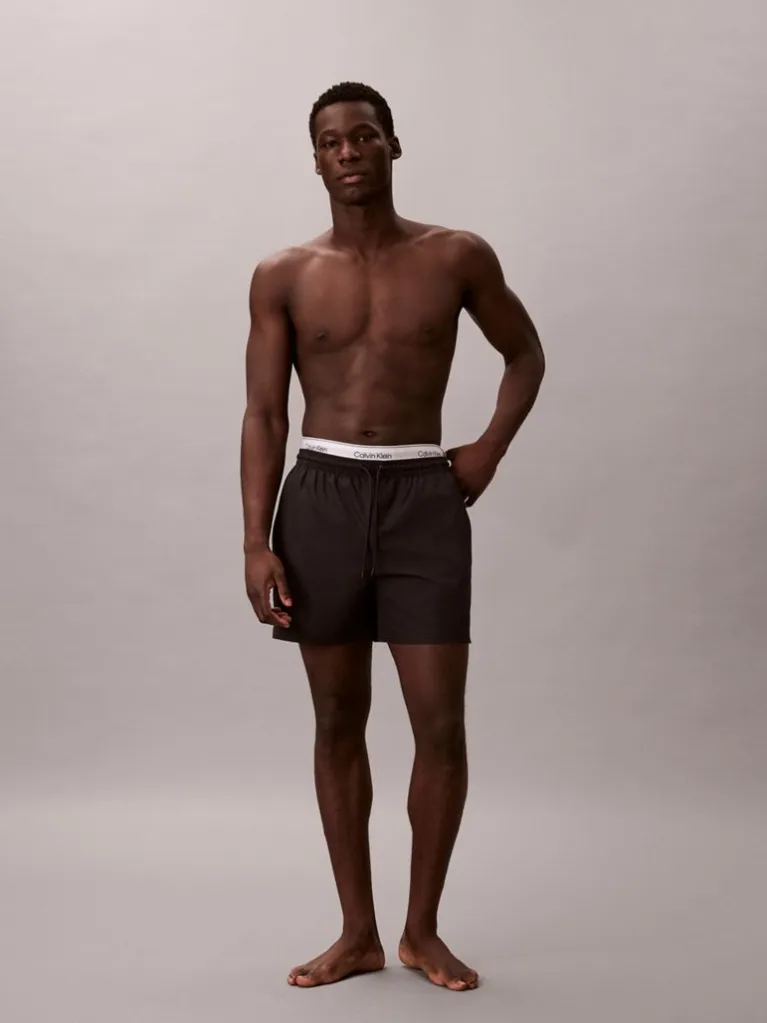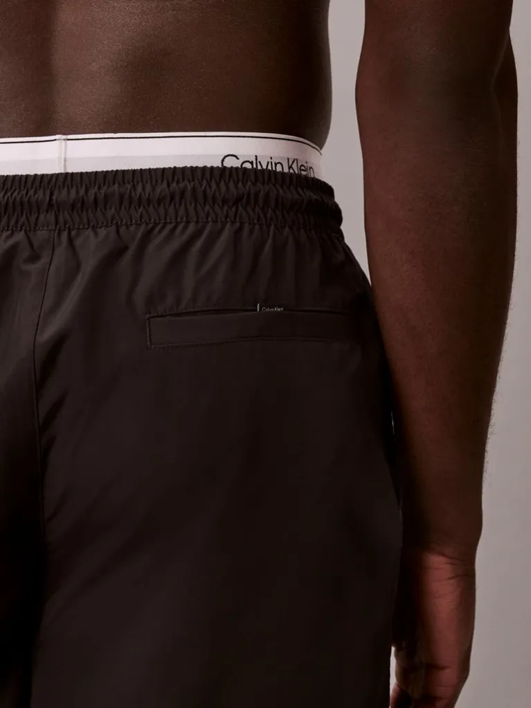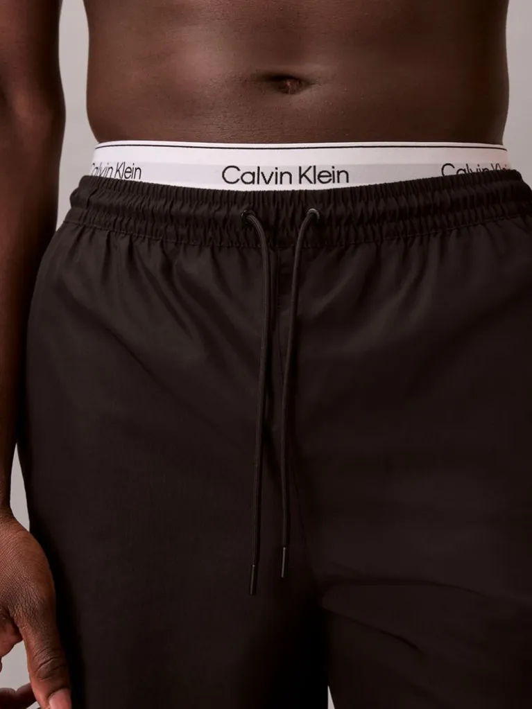 Ανδρικό μαγιό Calvin Klein με τρεις τσέπες με φερμουάρ , λάστιχο και κορδόνι στην μέση που προσφέρει σταθερότητα. Μαύρο μαγιό βερμούδα μεσαίου μήκους, με print Logo Calvin klein αριστερά, κατασκευασμένο από υψηλής ποιότητας ανακυκλωμένο υλικό, πολύ μαλακό, στεγνώνει αμέσως και επιτρέπει άνεση κινήσεων.