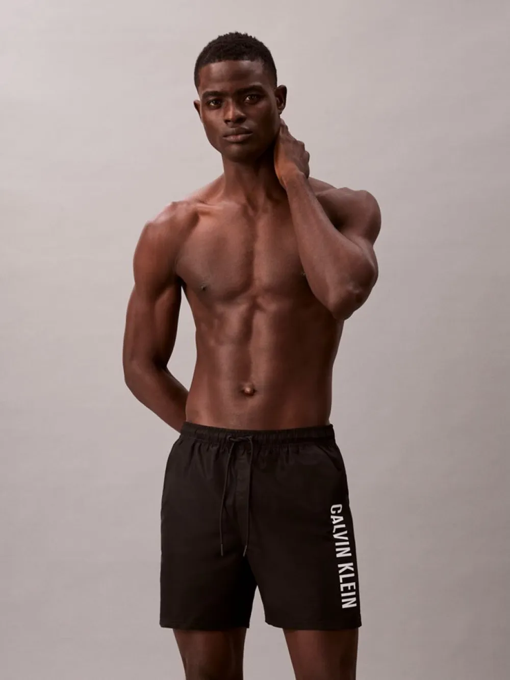Ανδρικό μαγιό Calvin Klein με τρεις τσέπες με φερμουάρ , λάστιχο και κορδόνι στην μέση που προσφέρει σταθερότητα. Μαύρο μαγιό βερμούδα μεσαίου μήκους, με print Logo Calvin klein αριστερά, κατασκευασμένο από υψηλής ποιότητας ανακυκλωμένο υλικό, πολύ μαλακό, στεγνώνει αμέσως και επιτρέπει άνεση κινήσεων.