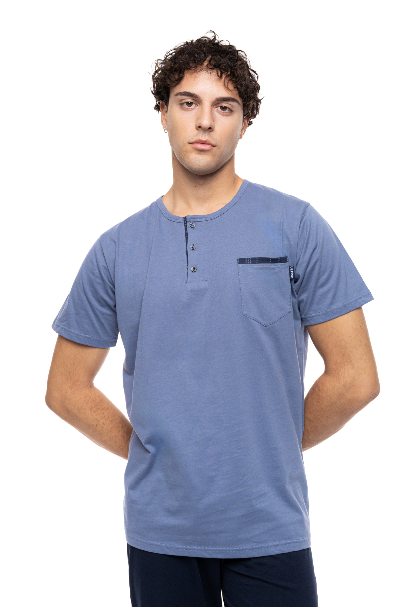 Ανδρική Καλοκαιρινή Πυτζάμα Ulisse - 3PCS BLUE NIGHTS - Cosmos Blue - Κοντομάνικη - Cotton