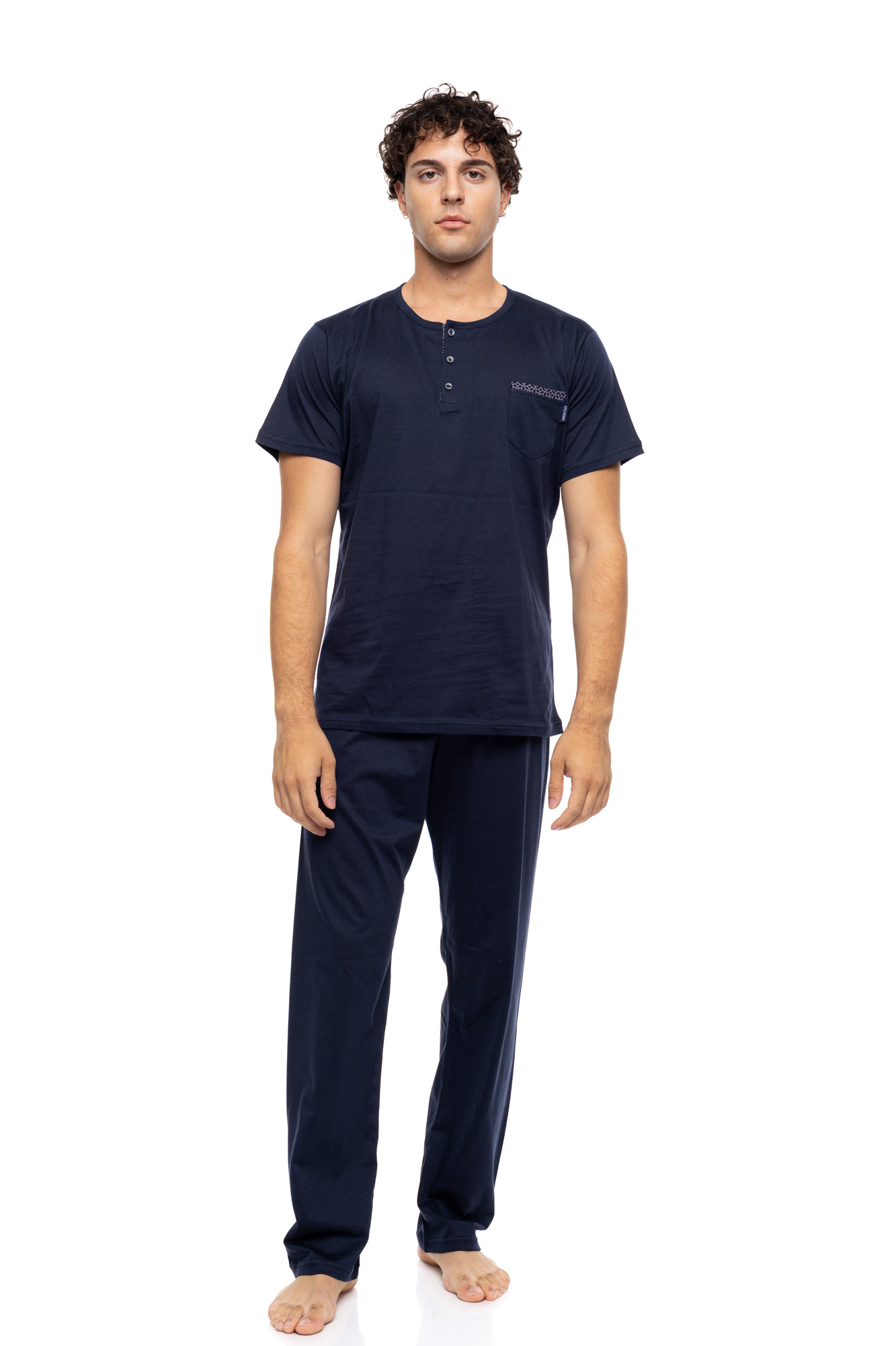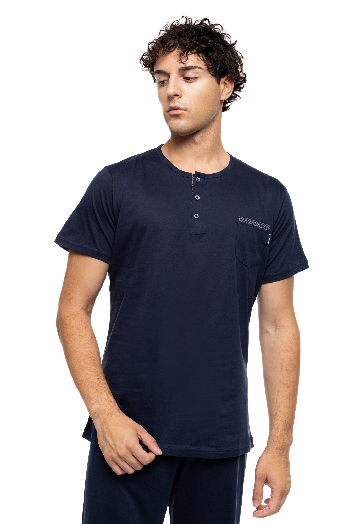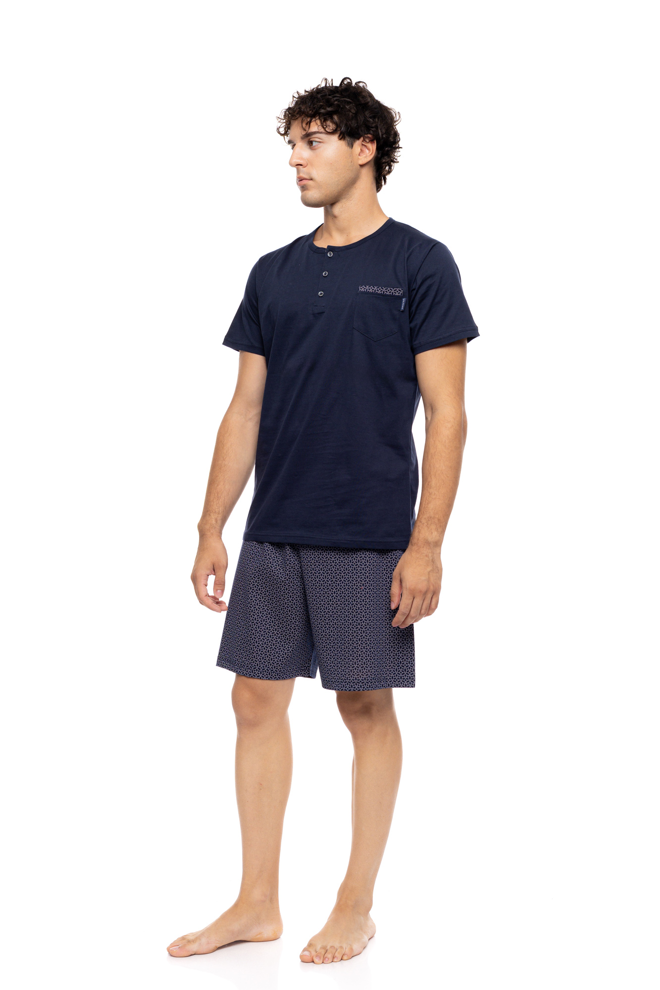 Ανδρική Καλοκαιρινή Πυτζάμα Ulisse - 3PCS EASY GEO - Yacht Blue - Κοντoμάνικη - Cotton