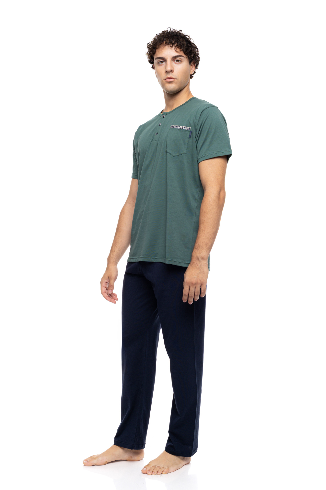 Ανδρική Καλοκαιρινή Πυτζάμα Ulisse - 3PCS PETIT PLAID - Sea Green - Κοντoμάνικη - Cotton