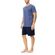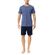 Ανδρική Καλοκαιρινή Πυζάμα Ulisse τριών τεμαχίων, με μπλε παντελόνι και βερμούδα και Cosmos Blue μπλούζα με κοντό μανίκι, στρογγυλή λαιμόκοψη με πατιλέτα και λογότυπο στο στήθος. Δροσερή και απορροφητική πυτζάμα κατασκευασμένη από από υψηλής ποιότητας βαμβακερό ύφασμα.