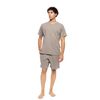 Ανδρική Καλοκαιρινή Πυζάμα Ulisse με μπεζ βερμούδα και μπεζ μπλούζα με κοντό μανίκι και V λαιμόκοψη. Δροσερή και απορροφητική πυτζάμα κατασκευασμένη από από υψηλής ποιότητας βαμβακερό ύφασμα.