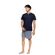 Ανδρική Καλοκαιρινή Πυζάμα Ulisse με γκρί εμπριμέ βερμούδα και μπλε μπλούζα με κοντό μανίκι και λαιμόκοψη. Δροσερή και απορροφητική πυτζάμα κατασκευασμένη από από υψηλής ποιότητας βαμβακερό ύφασμα.