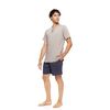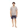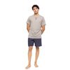 Ανδρική Καλοκαιρινή Πυζάμα Ulisse με μπλε εμπριμέ βερμούδα και Sand μπλούζα με κοντό μανίκι και στρογγυλή λαιμόκοψη. Δροσερή και απορροφητική πυτζάμα κατασκευασμένη από από υψηλής ποιότητας βαμβακερό ύφασμα.