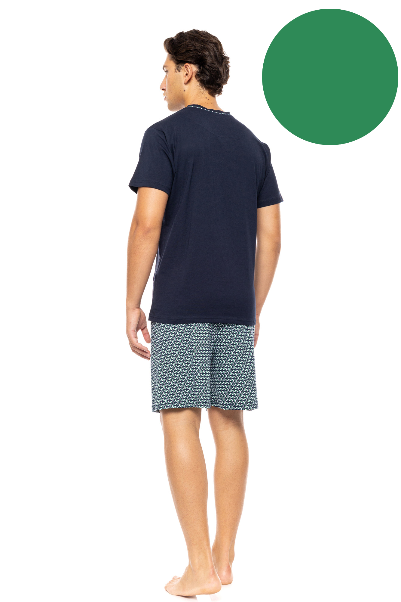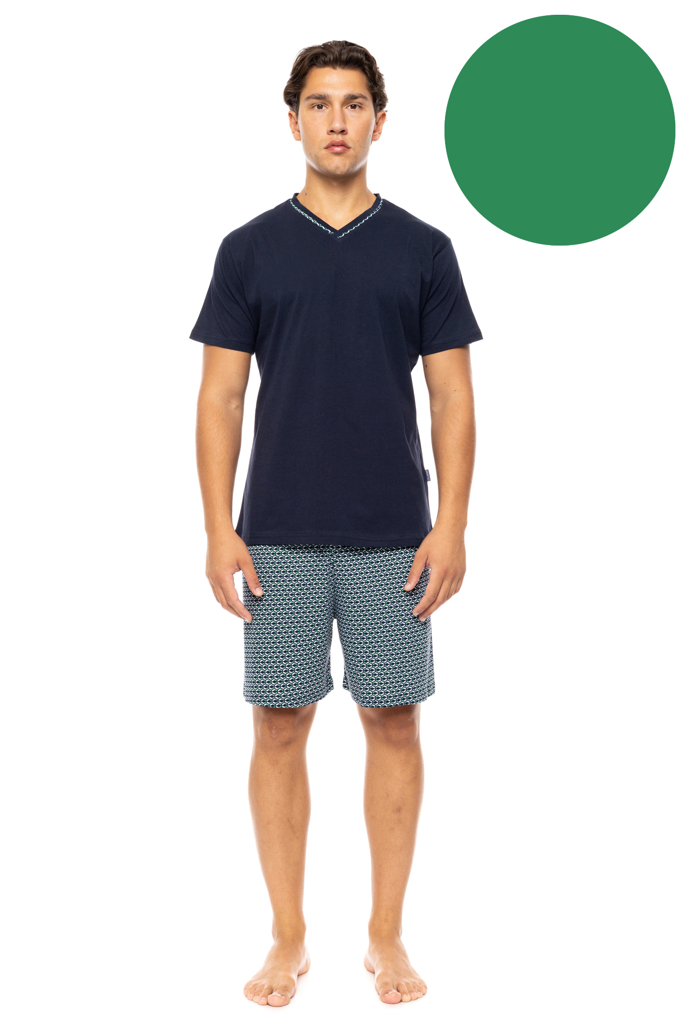Ανδρική Καλοκαιρινή Πυζάμα Ulisse με εμπριμέ βερμούδα και Sea Green μπλούζα με κοντό μανίκι και V λαιμόκοψη. Δροσερή και απορροφητική πυτζάμα κατασκευασμένη από από υψηλής ποιότητας βαμβακερό ύφασμα.