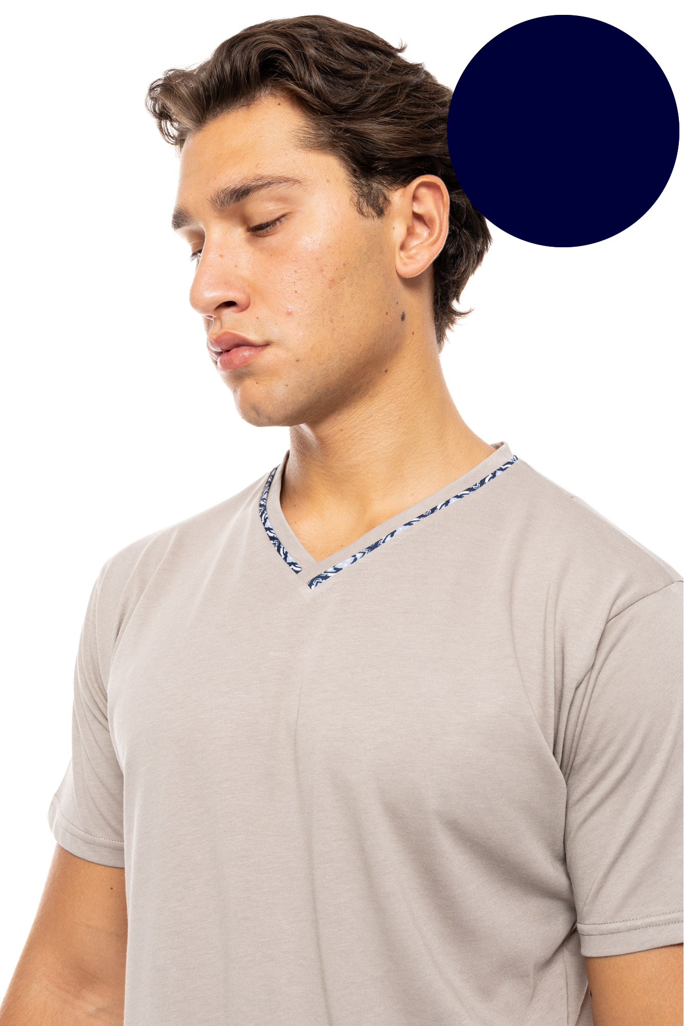 Ανδρική Καλοκαιρινή Πυτζάμα Ulisse - Yacht Blue - V-NECK - Print - Κοντό μανίκι - Cotton