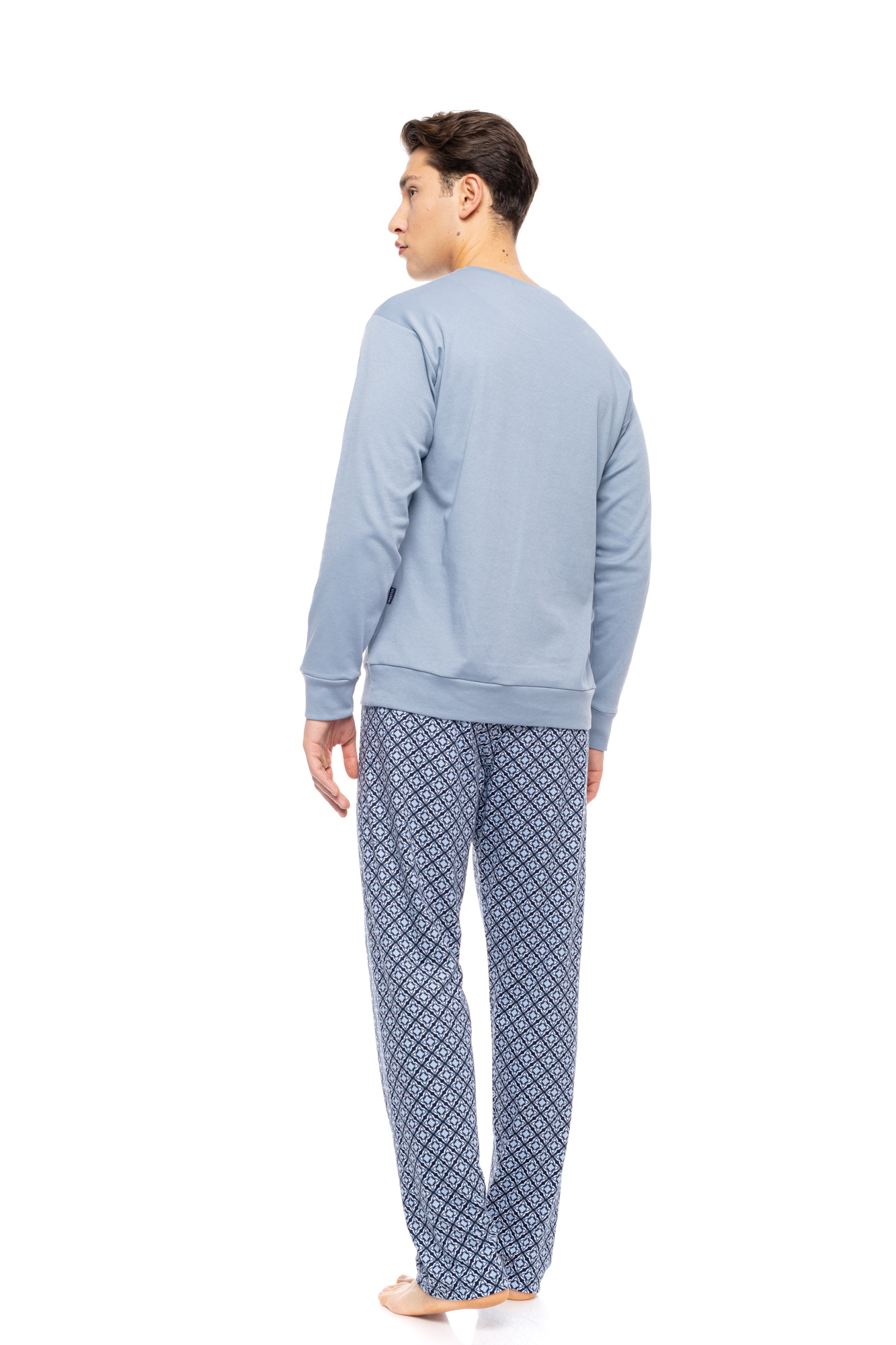 Ανδρική πυτζάμα ULISSE με Blue Geo print με μαλακό λάστιχο στην μέση και στους αστραγάλους. Χειμωνιάτικο Homewear Set με Blue Cloud μακρυμάνικη μπλούζα, λάστιχο στα τελειώματα και στρογγυλή λαιμόκοψη.