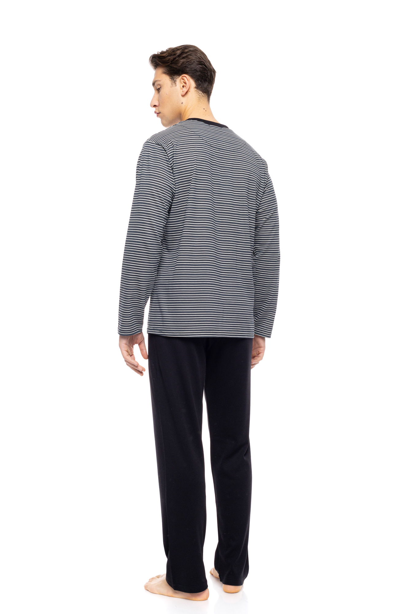 Ανδρική πυτζάμα ULISSE - Γκρι ριγέ Μπλούζα - Μαύρο παντελόνι - Regular Fit - Cotton