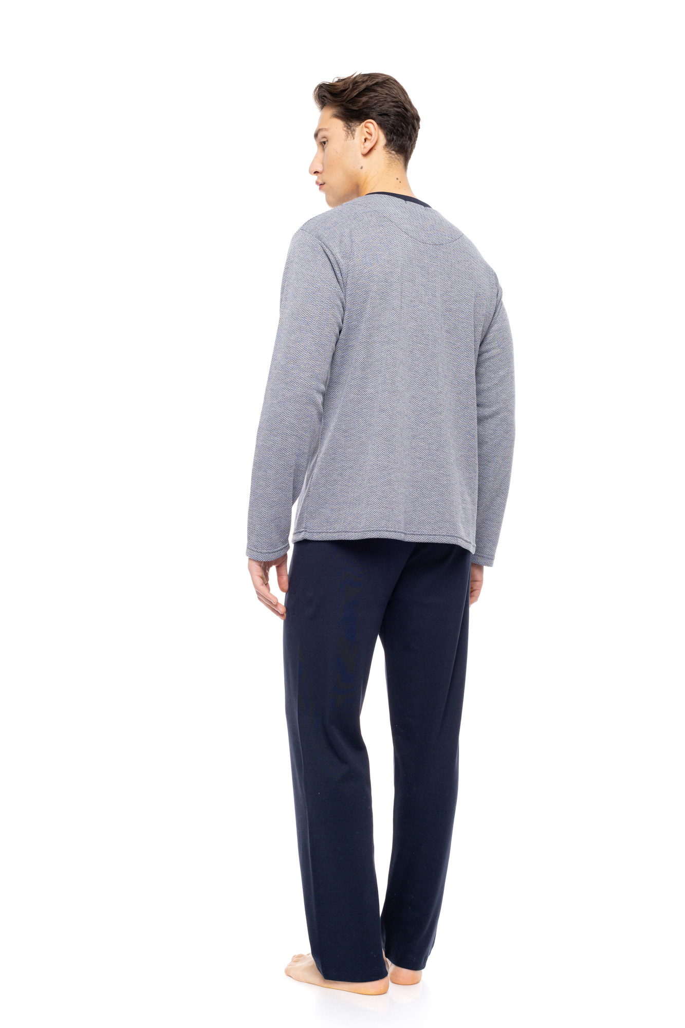 Ανδρική πυτζάμα ULISSE με navy παντελόνι με μαλακό λάστιχο στην μέση. Χειμωνιάτικο Homewear Set με MOSAIC DENIM μπλούζα με κουμπιά και τσέπη στο στήθος.