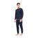 Ανδρική πυτζάμα ULISSE με μπλε παντελόνι με μαλακό λάστιχο στην μέση και στους αστραγάλους. Χειμωνιάτικο Homewear Set με navy μακρυμάνικη μπλούζα, λάστιχο στα τελειώματα με κόκκινη και γκρι ρίγα και στρογγυλή λαιμόκοψη.