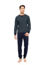 Ανδρική πυτζάμα ULISSE. Παντελόνι MOSAIC DENIM με μαλακό λάστιχο στην μέση. Χειμωνιάτικο Homewear Set με Navy μακρυμάνικη μπλούζα με στρογγυλή λαιμόκοψη και πατιλέτα.