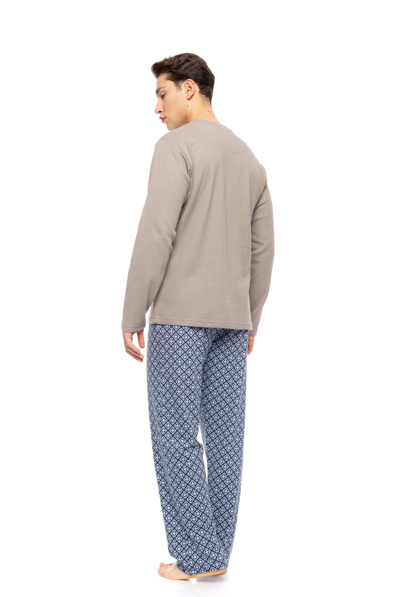 Ανδρική πυτζάμα ULISSE με OCEAN BLUE Geo Print παντελόνι σε ίσια γραμμή και μαλακό λάστιχο στην μέση. Χειμωνιάτικο Homewear Set με skin μακρυμάνικη μπλούζα σε ίσια γραμμή με στρογγυλή λαιμόκοψη.