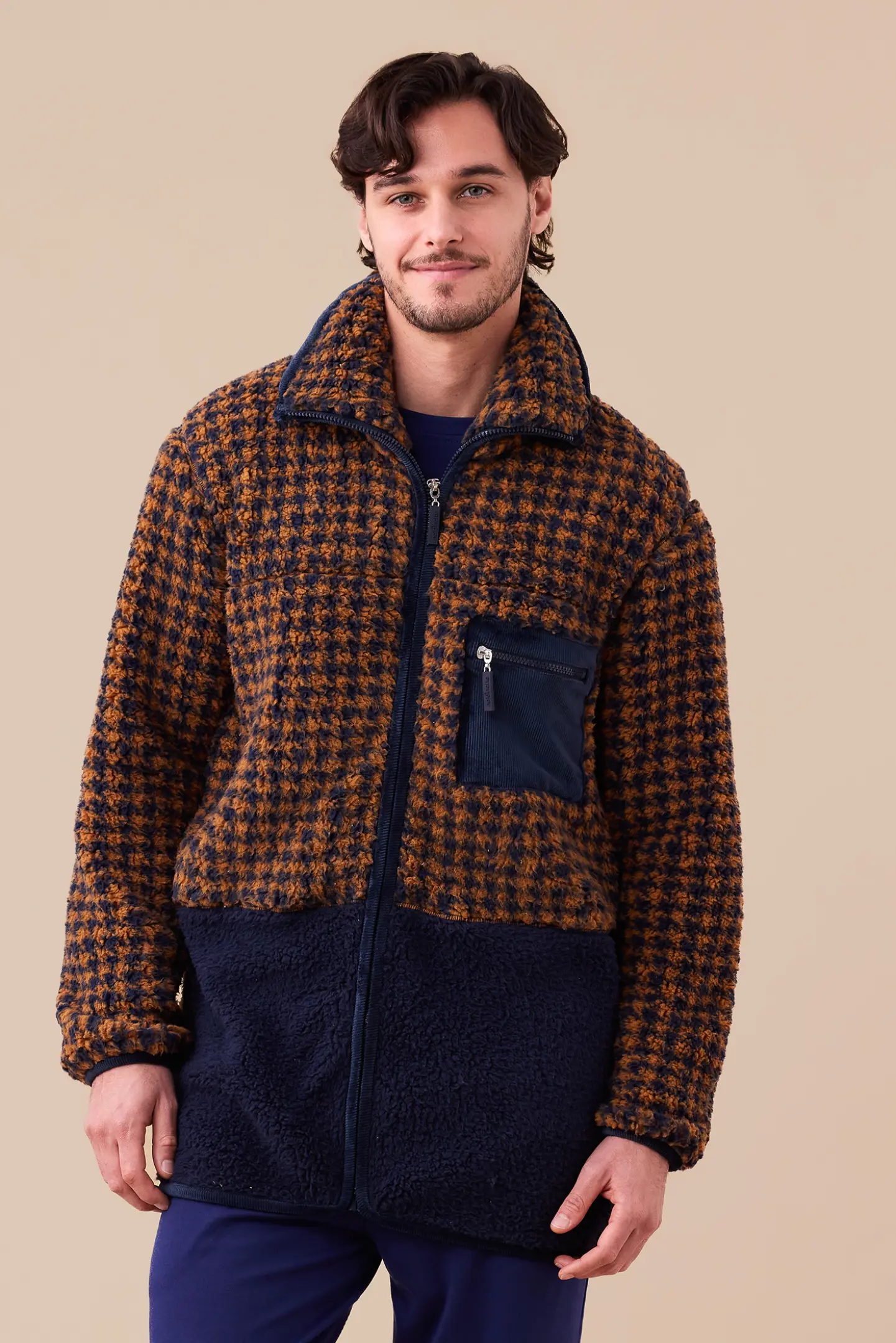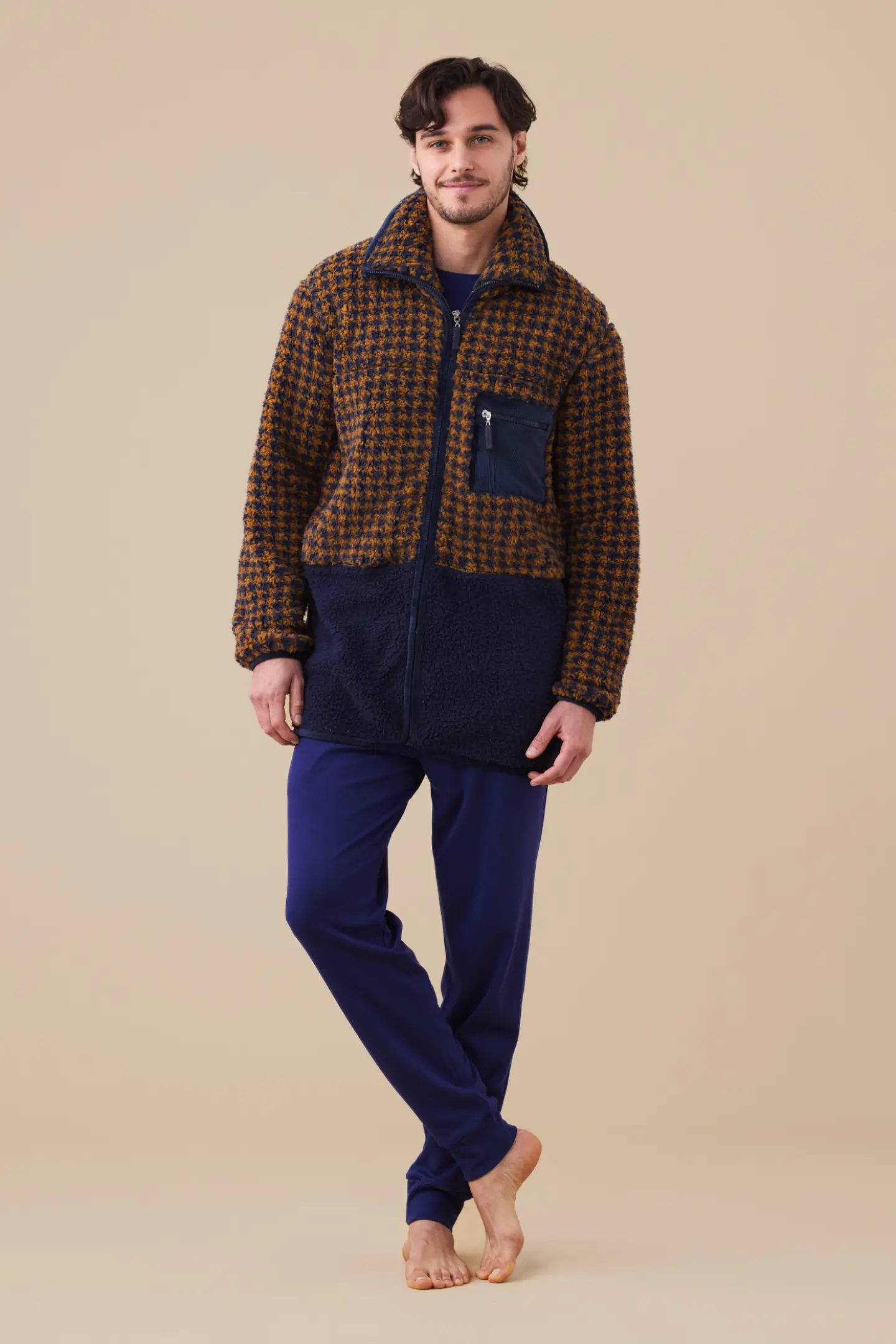 Ανδρική χειμωνιάτικη ρόμπα Noidinotte baby fleece μπλε καρό . Homewear με φερμουάρ και τσέπες. ίδανικο για τις πιο κρύες μέρες του χειμώνα.