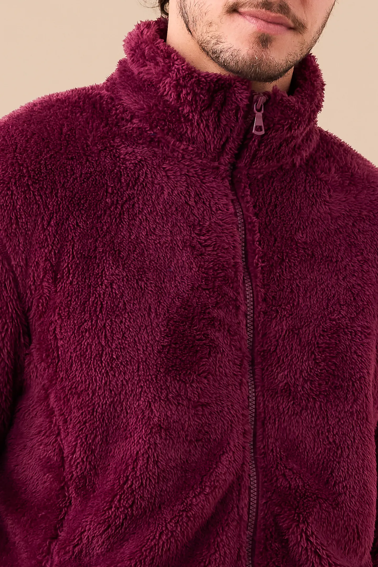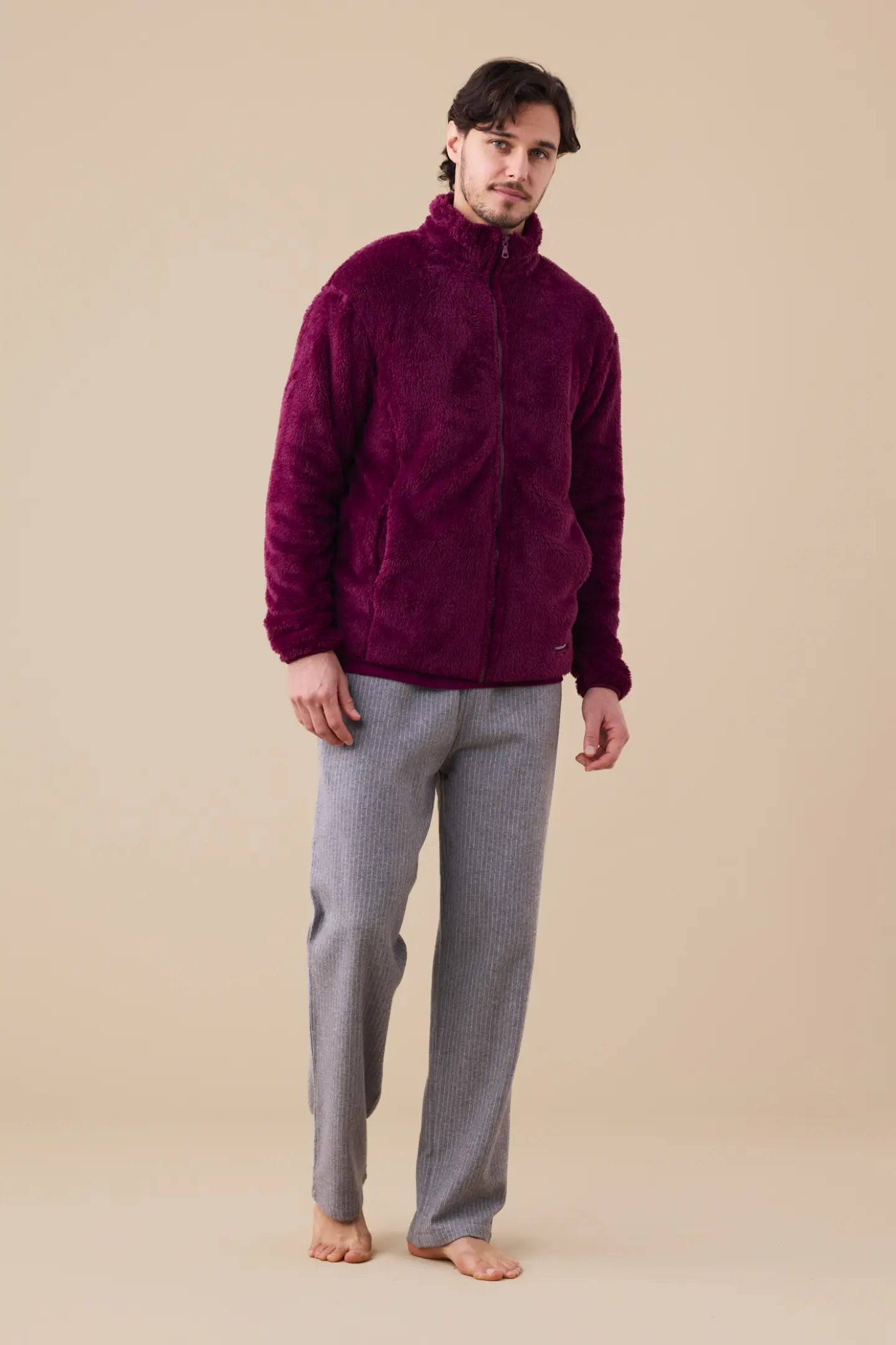 Ανδρική χειμωνιάτικη ρόμπα Noidinotte baby fleece μπορντό. Homewear με φερμουάρ και τσέπες. ίδανικο για τις πιο κρύες μέρες του χειμώνα.