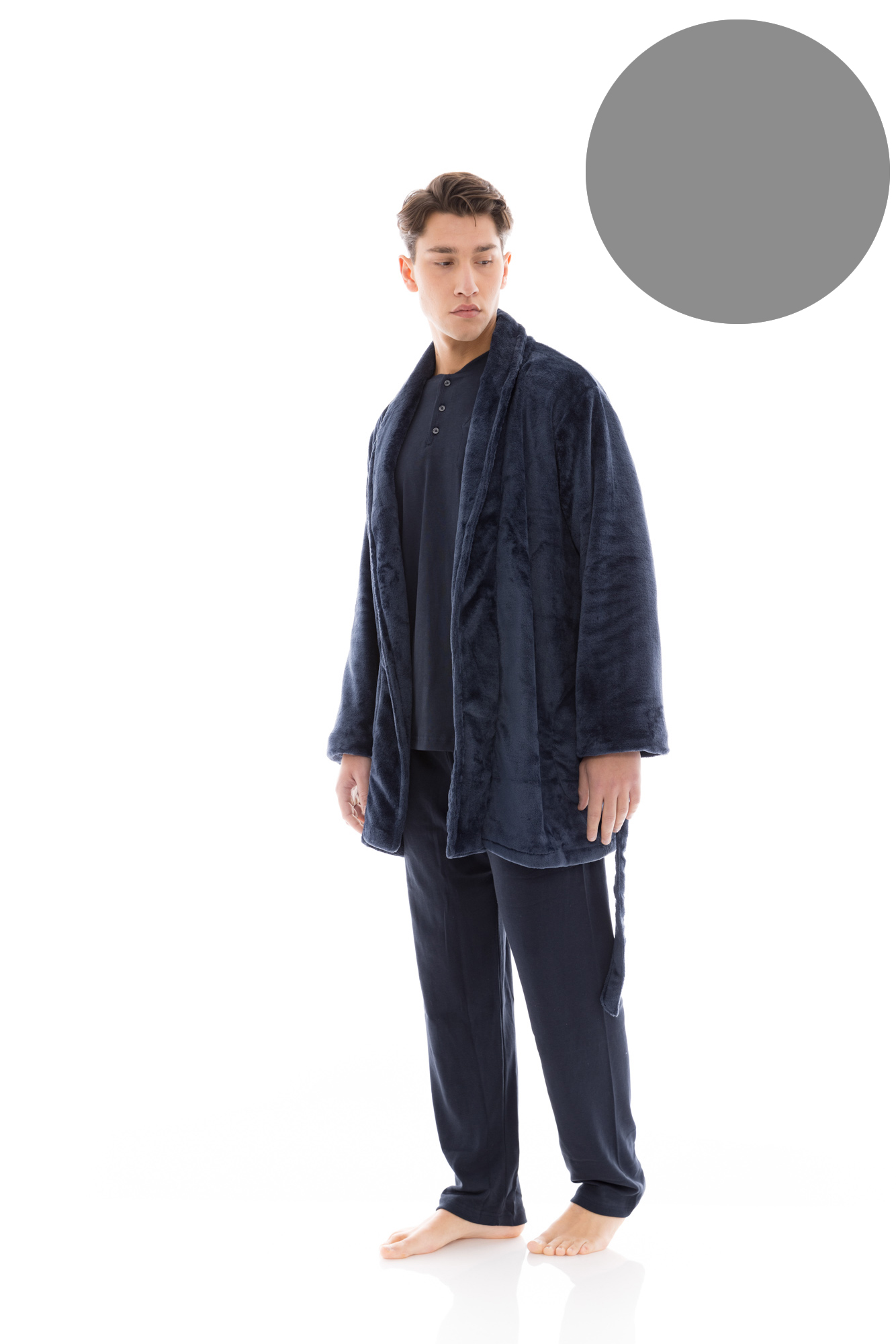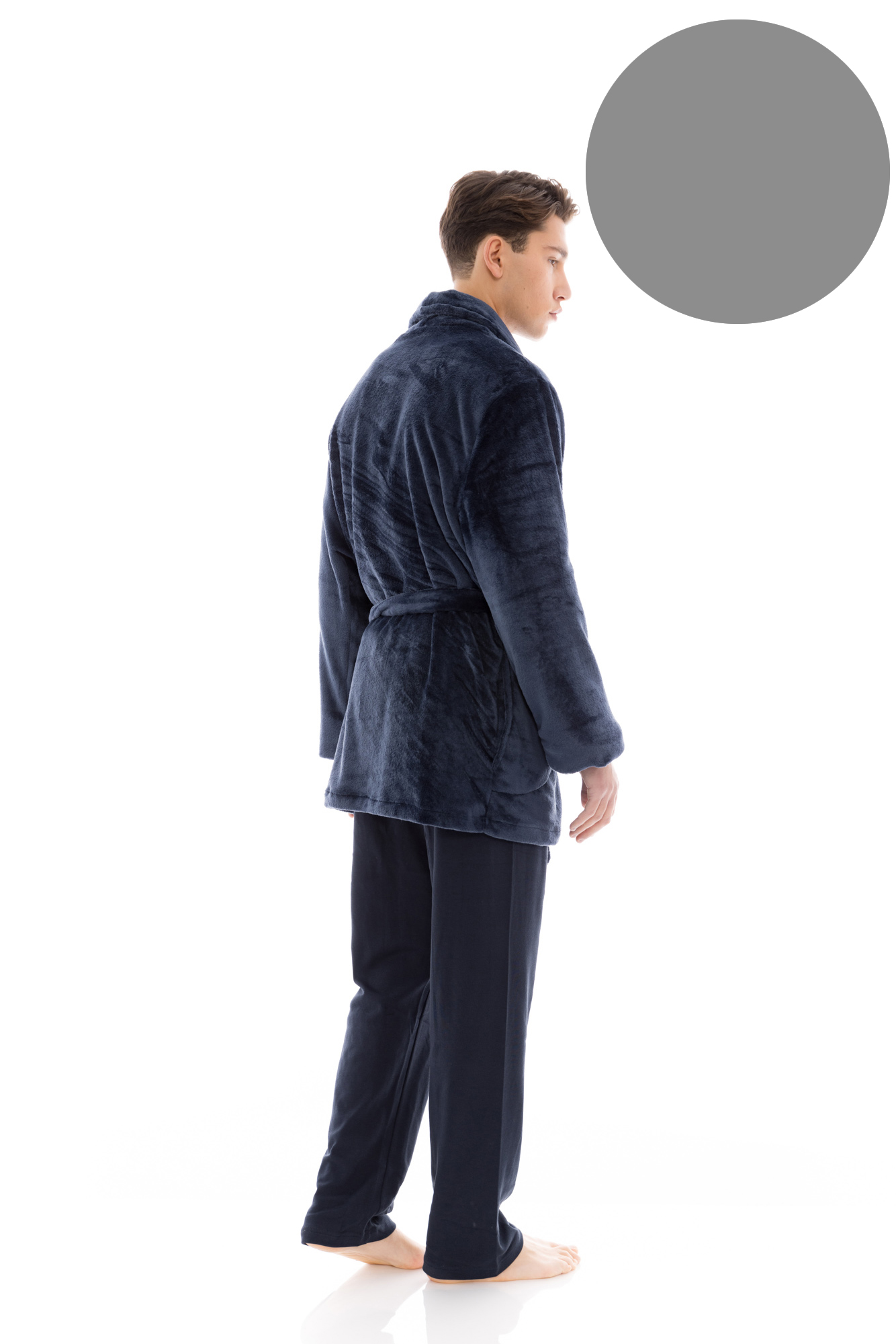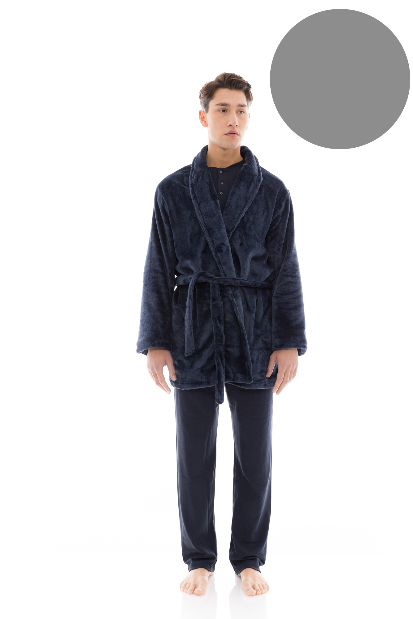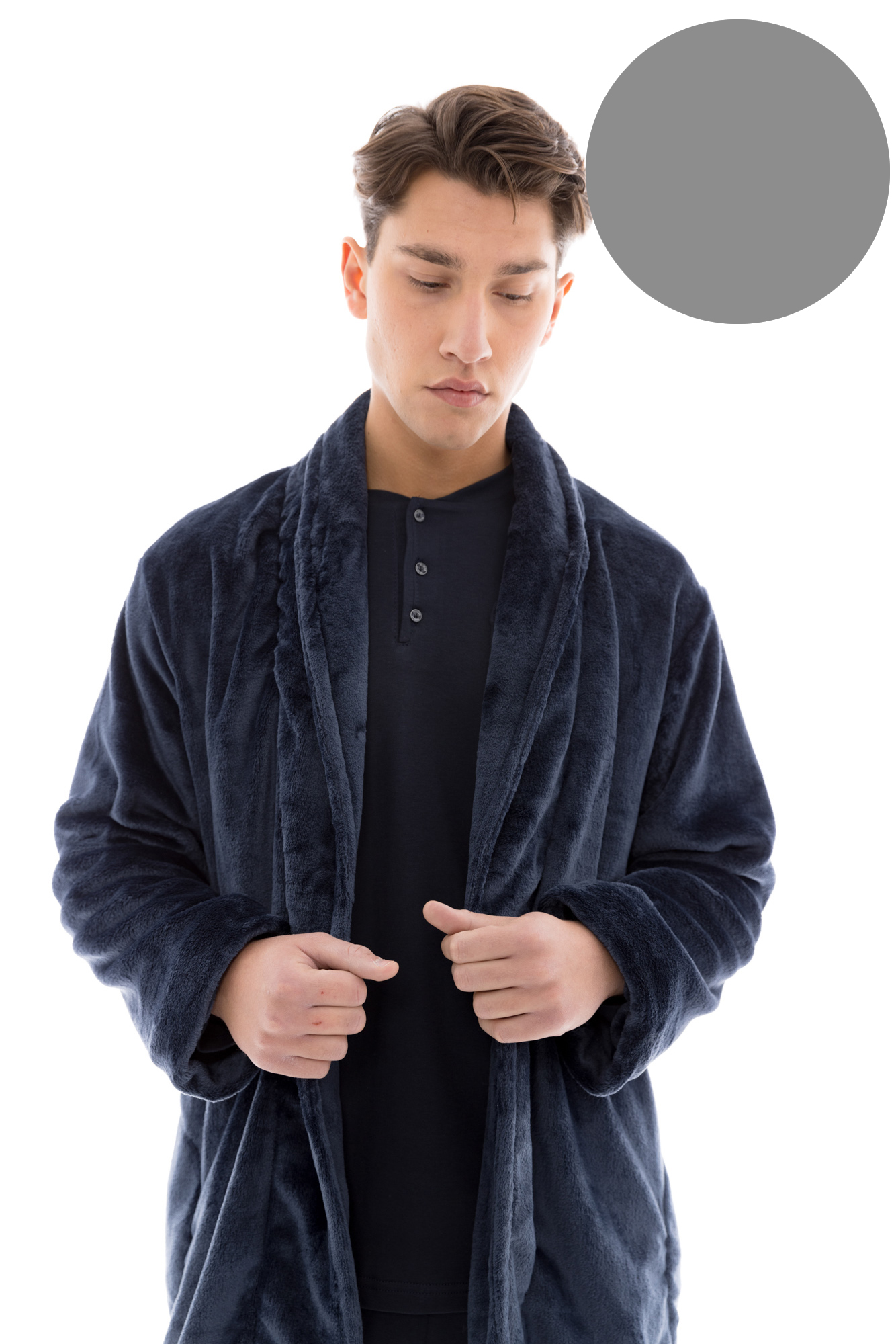 Ανδρική ρόμπα κοντή ULISSE σκούρο γκρι fleece. Ζεστή ρόμπα σταυρωτή με πέτο, τσέπες και δέσιμο στην μέση με ζώνη.