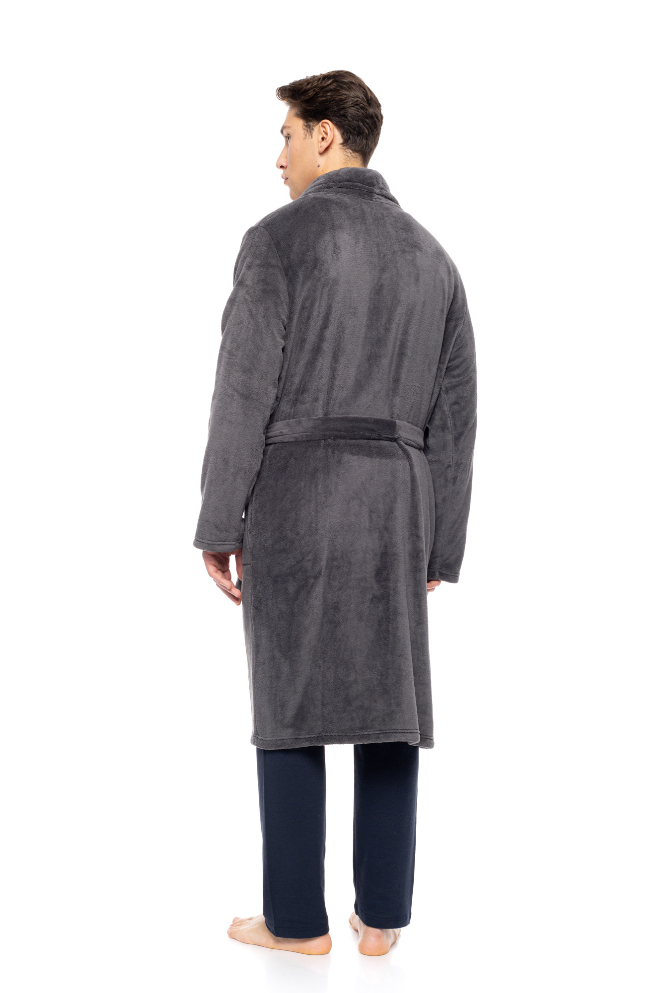 Ανδρική ρόμπα μακριά ULISSE σκούρο γκρι fleece. Ζεστή ρόμπα σταυρωτή με πέτο, τσέπες και δέσιμο στην μέση με ζώνη.