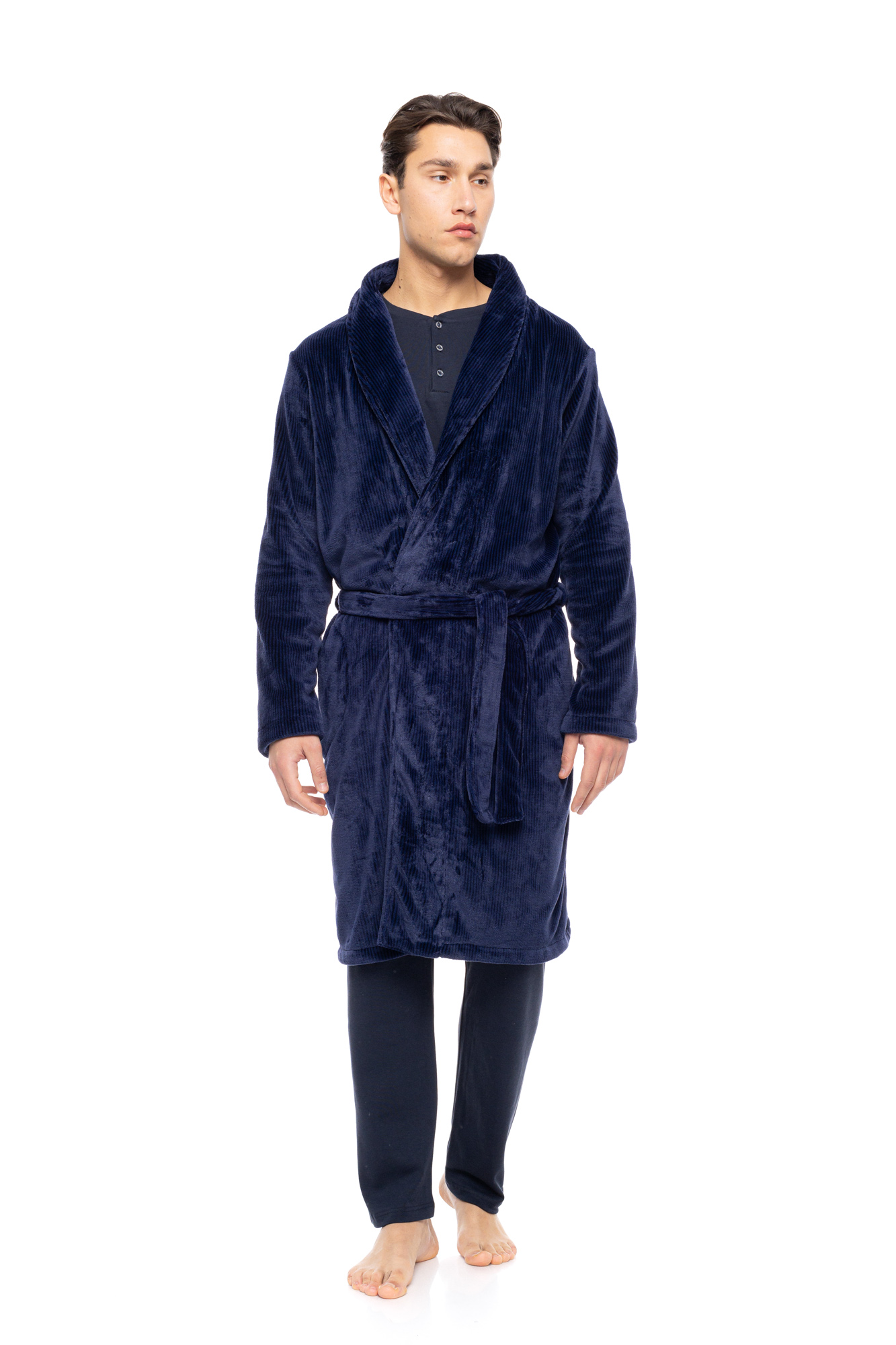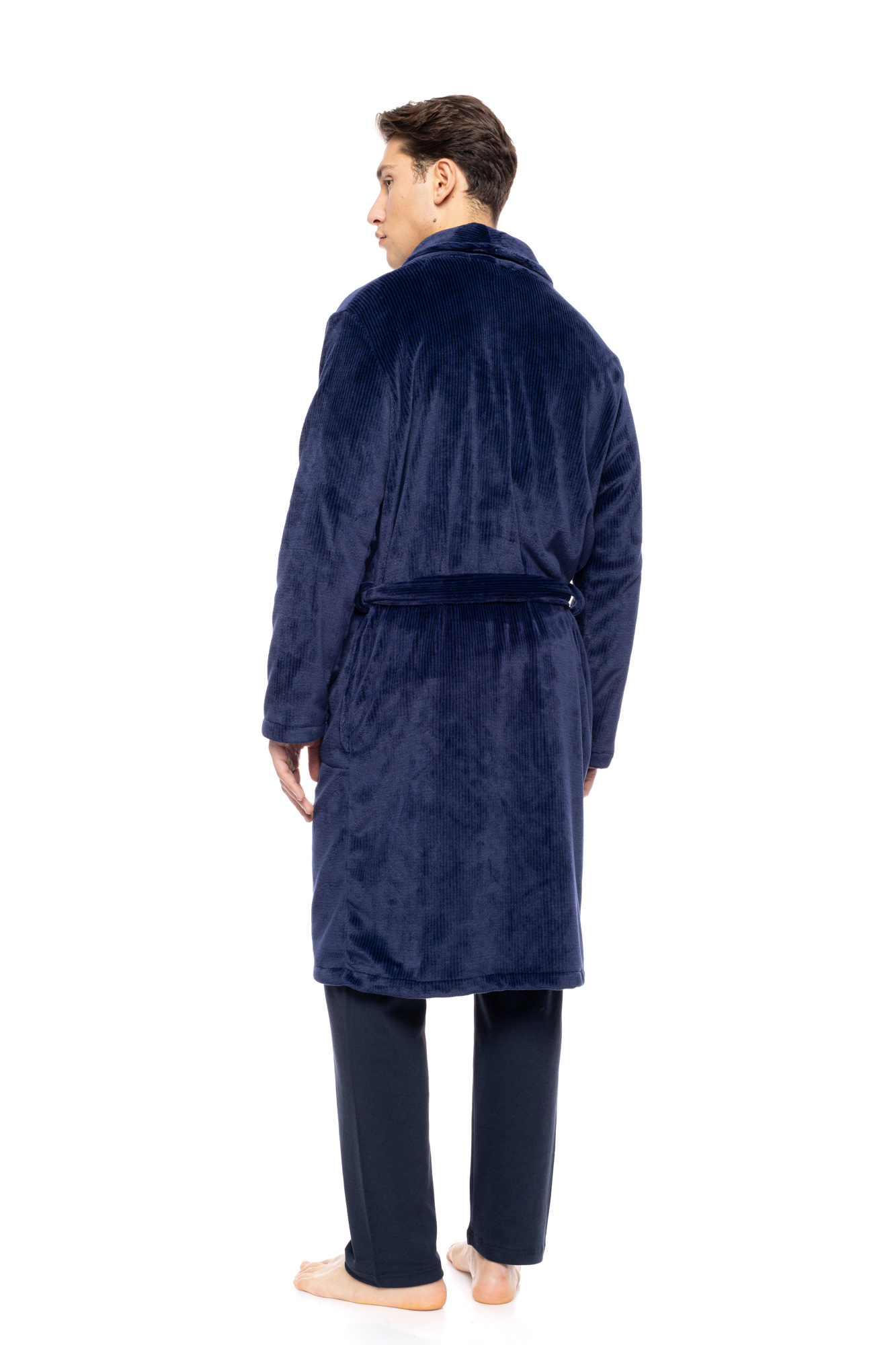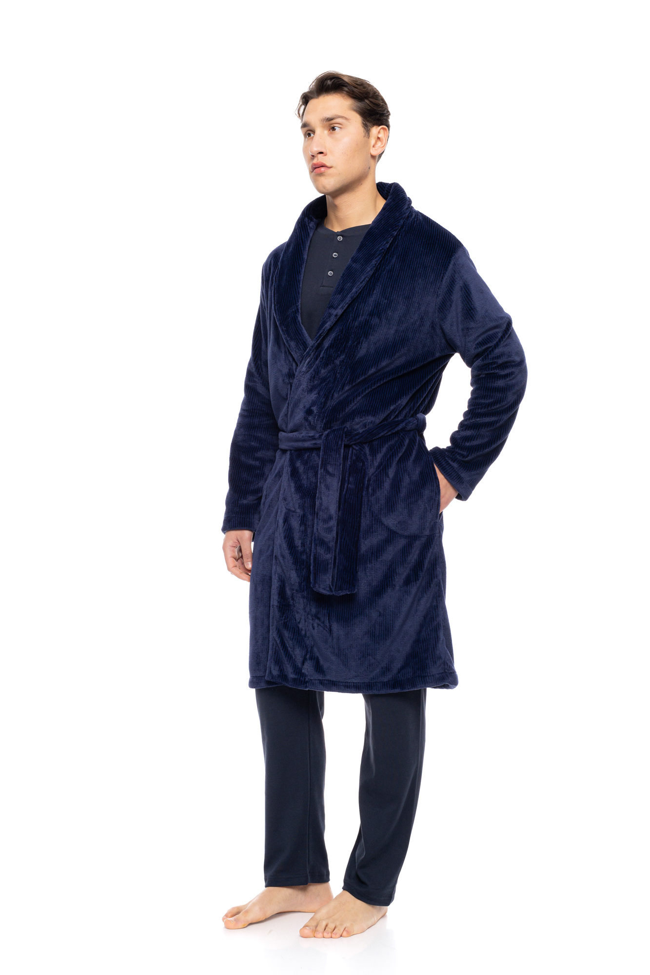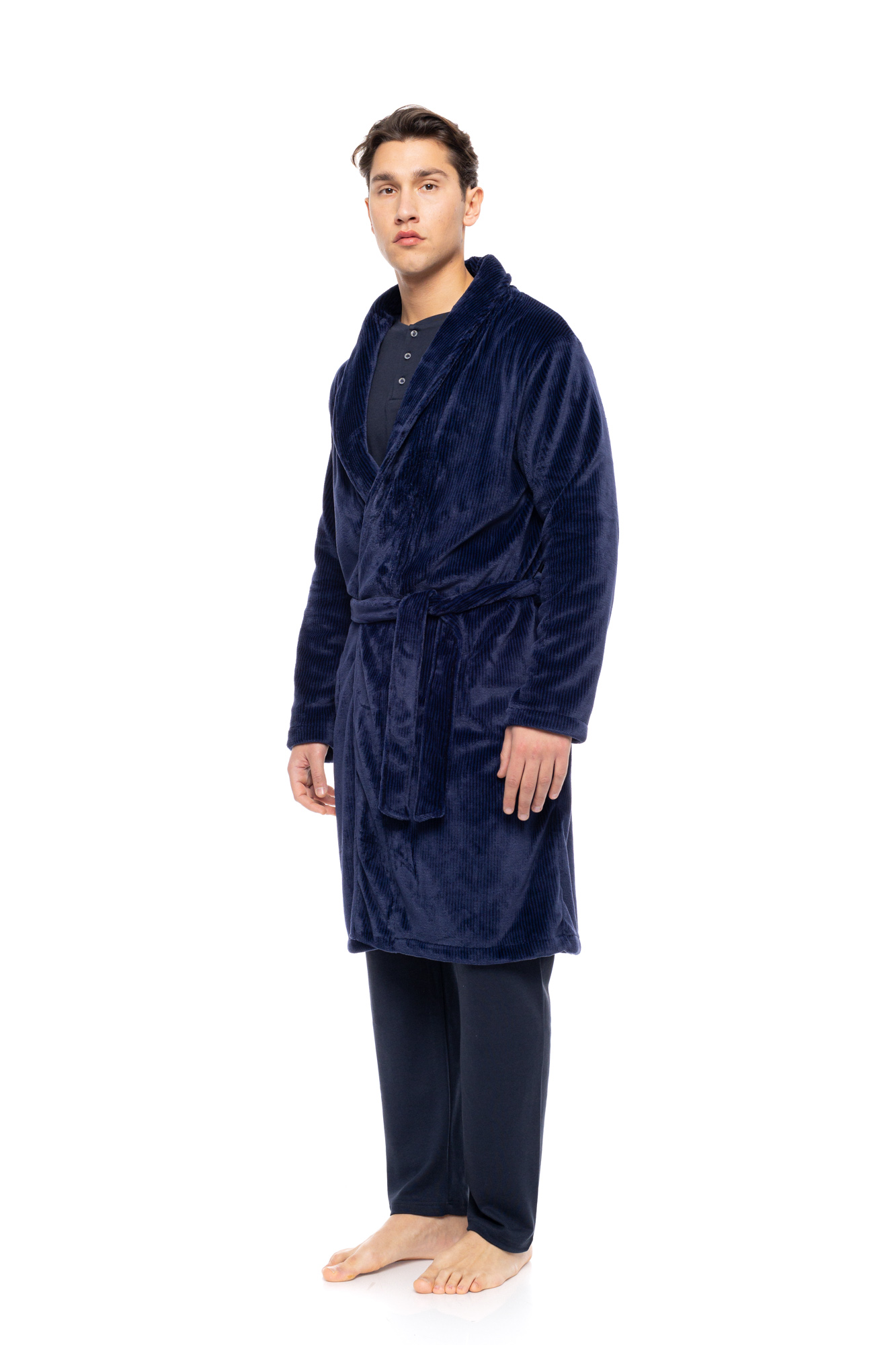 Ανδρική ρόμπα μακριά ULISSE σκούρο μπλε Velvet. SOFT STRIPES Yacht Blue Ζεστή ρόμπα σταυρωτή με πέτο, τσέπες και δέσιμο στην μέση με ζώνη.