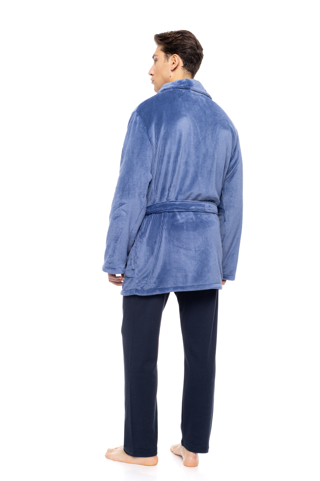 Ανδρική ρόμπα μακριά ULISSE cosmos blue fleece. Ζεστή ρόμπα σταυρωτή με πέτο, τσέπες και δέσιμο στην μέση με ζώνη.