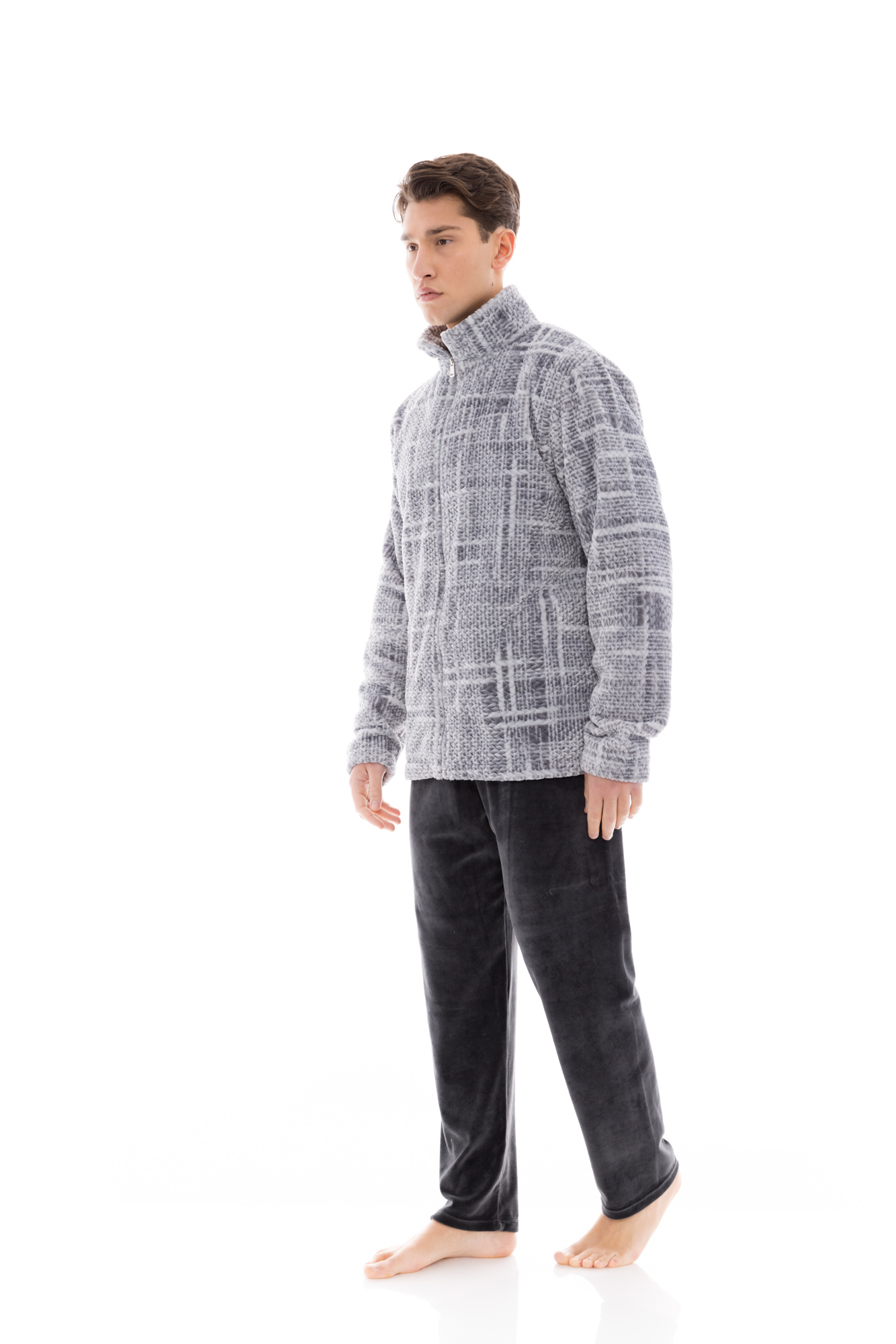 Ανδρική Ρόμπα Ζακέτα ULISSE  Γκρι Καρό από μαλακό και ζεστό ύφασμα. Κοντή ρόμπα με φερμουάρ και τσέπες.
