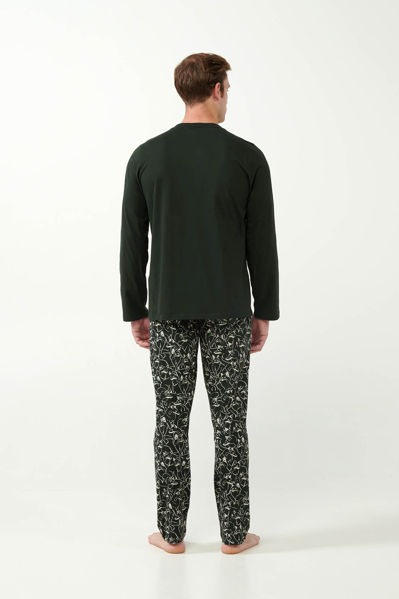 Ανακαλύψτε την άνεση που μπορεί να σας προσφέρει ένα σετ ανδρικές πυτζάμες κατασκευασμένο από 100% βαμβάκι s. jersey με που επιτρέπει στο δέρμα να αναπνέει και προσφέρει απαλό άγγιγμα στο σώμα. Το σετ αποτελείται από μονόχρωμο τοπ πρακτική πατιλέτα και παντελόνι που αποτυπώνει λευκούς λύκους σε σκούρο καμβά. Σχεδιασμένο για να δώσει άνεση στα απογεύματα σας ή το βραδινό σας ύπνο.