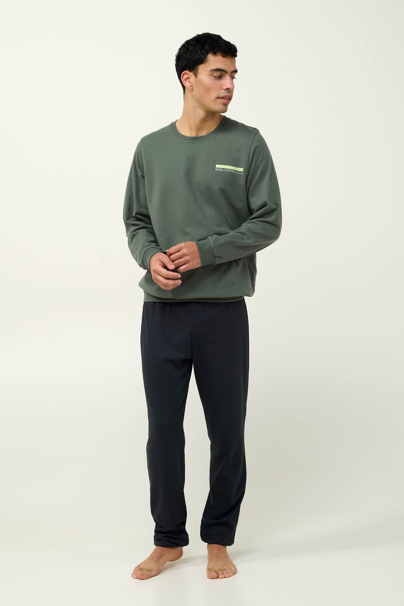Ανανεώστε τη χειμερινή σας γκαρνταρόμπα με αυτό το ανδρικό σετ φόρμες, σχεδιασμένο για χαρίσει καθημερινή άνεση. Κατασκευασμένο από 100% φούτερ βαμβάκι, αποτελείται από μπλούζα με στρογγυλή λαιμόκοψη και μακριά μανίκια με μανσέτες, καθώς και παντελόνι με λάστιχο στους αστραγάλους για σταθερή και ζεστή εφαρμογή. Ιδανική επιλογή για χαλαρές εμφανίσεις, ελαφριά άσκηση ή στιγμές ξεκούρασης.