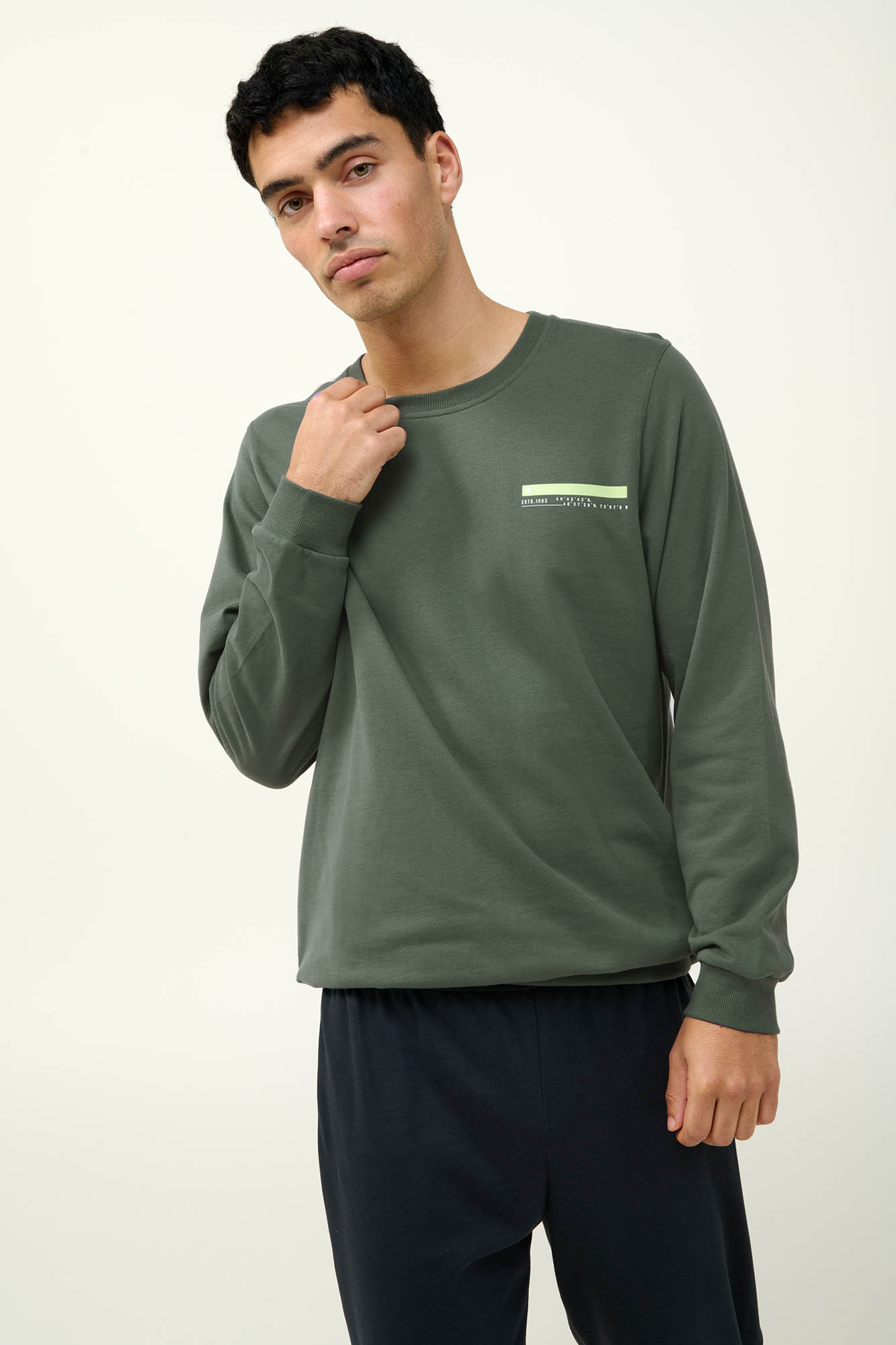 Ανανεώστε τη χειμερινή σας γκαρνταρόμπα με αυτό το ανδρικό σετ φόρμες, σχεδιασμένο για χαρίσει καθημερινή άνεση. Κατασκευασμένο από 100% φούτερ βαμβάκι, αποτελείται από μπλούζα με στρογγυλή λαιμόκοψη και μακριά μανίκια με μανσέτες, καθώς και παντελόνι με λάστιχο στους αστραγάλους για σταθερή και ζεστή εφαρμογή. Ιδανική επιλογή για χαλαρές εμφανίσεις, ελαφριά άσκηση ή στιγμές ξεκούρασης.