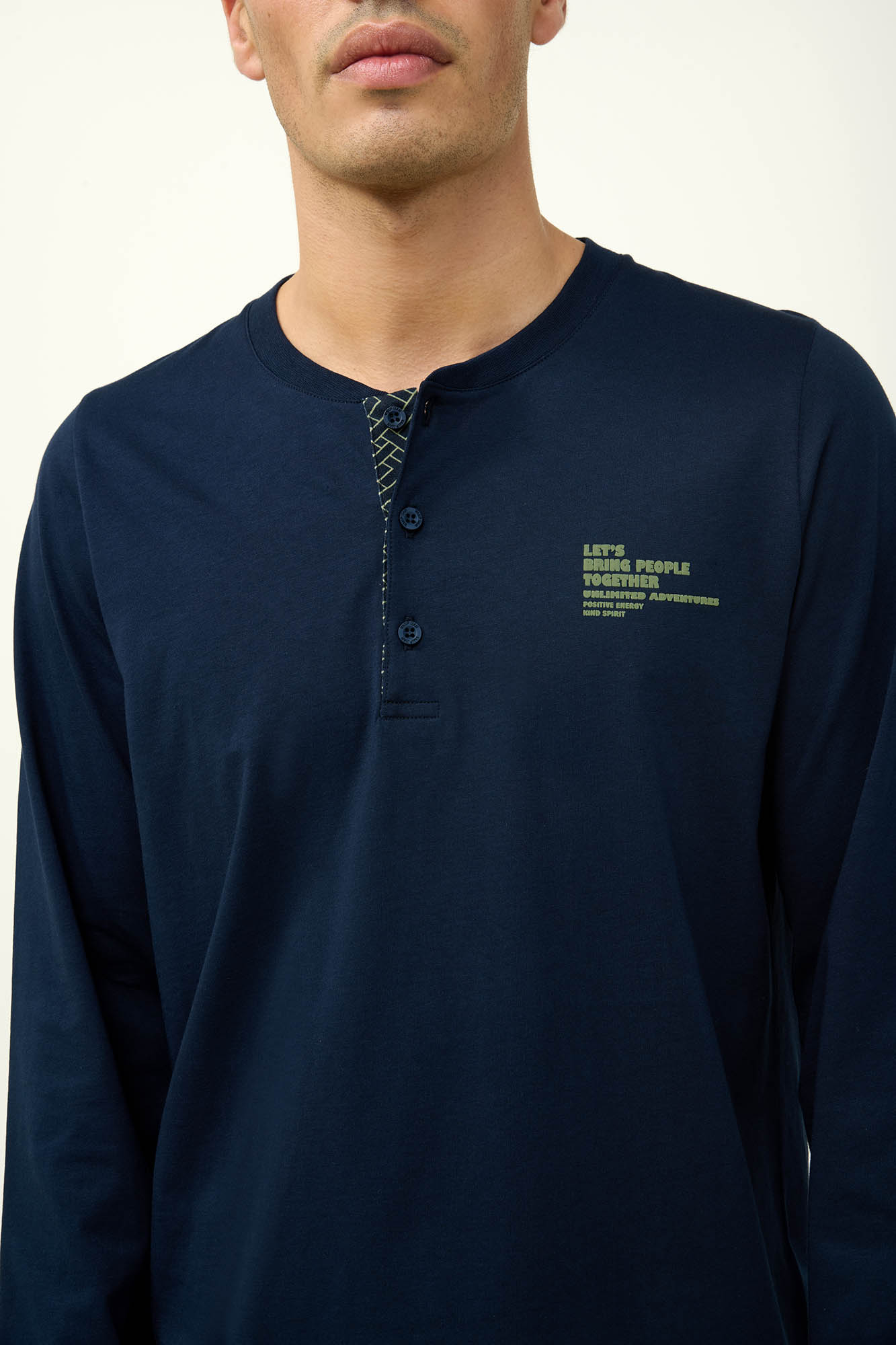 Επιλέξτε ένα σετ χειμερινές ανδρικές πυτζάμες από 100% βαμβάκι s. jersey. Το επάνω μέρος έχει πατιλέτα που προσφέρει άνετη εφαρμογή και κλασικό, καθαρό στυλ, ενώ το παντελόνι με γεωμετρικό μοτίβο χαρίζει μοντέρνο χαρακτήρα. Το απαλό και διαπνέον ύφασμα εξασφαλίζει άνεση όλη τη νύχτα, καθιστώντας αυτό το σετ ιδανικό τόσο για τον ύπνο όσο και για στιγμές χαλάρωσης στο σπίτι. Ένα διαχρονικό κομμάτι για τη χειμερινή σας γκαρνταρόμπα.