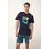Χαρίστε μια δροσερή νότα στο καλοκαίρι σας με αυτό το ανδρικό σετ πυτζάμες, κατασκευασμένο από 100% βαμβάκι single jersey με απαλή αίσθηση στο δέρμα. Η μπλούζα διαθέτει στρογγυλή λαιμόκοψη και τύπωμα με φοίνικες σε παραλία του Ρίο, προσθέτοντας τροπική πινελιά. Το κοντό παντελόνι είναι διακοσμημένο με πλούσια φύλλα σε καθαρό λευκή και τιρκουάζ απόχρωση. Άνετο και ελαφρύ θα σας βοηθήσει να απολαύσετε κάθε στιγμή στο σπίτι.