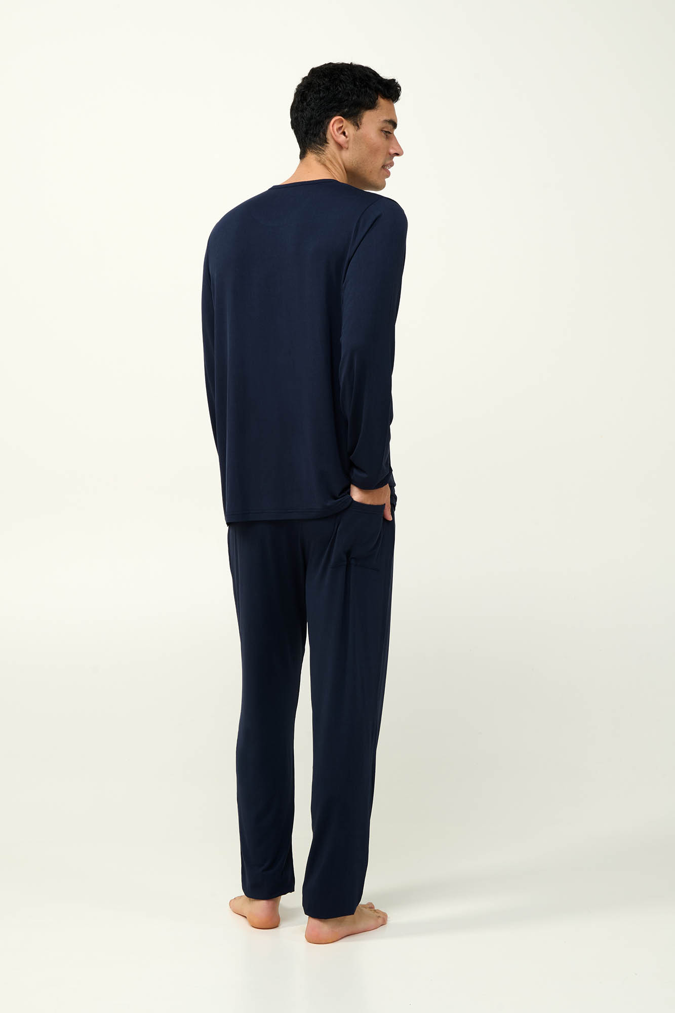Προσθέστε στη γκαρνταρόμπα σας αυτές τις ανδρικές χειμερινές πυτζάμες από LENZING Tencel Modal Micro, που προσφέρουν απαλή αίσθηση και διαρκή άνεση. Το σετ αποτελείται από μονόχρωμο τοπ με μανσέτες στα μανίκια και στρογγυλή λαιμόκοψη, που συνδυάζεται με ένα μονόχρωμο παντελόνι με μανσέτες για βέλτιστη εφαρμογή. Μια απλή αλλά διαχρονική πρόταση για να απολαύσετε κάθε στιγμή στο σπίτι.