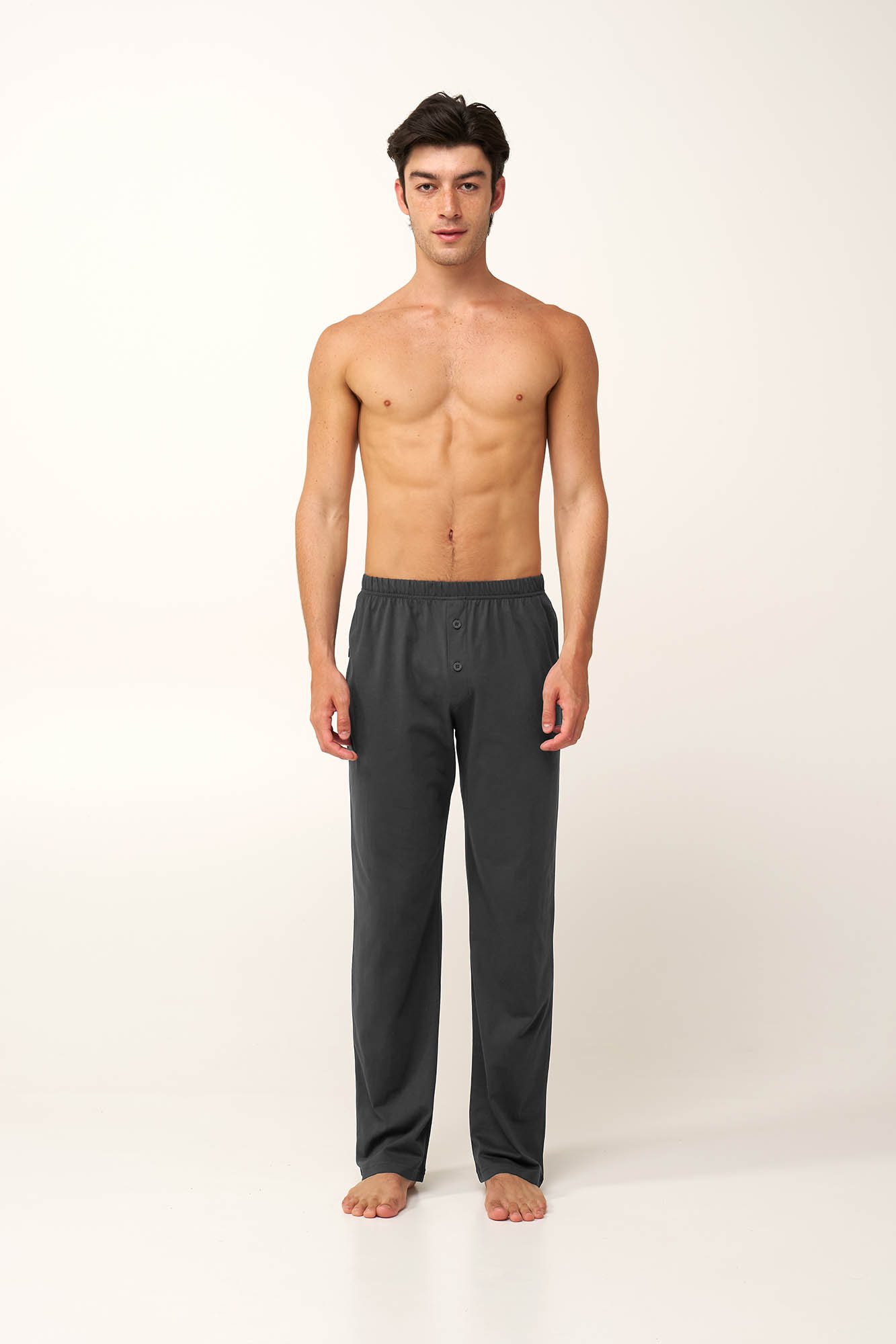 Επιλέξτε ένα ανδρικό μακρύ παντελόνι που συνδυάζει κλασικό σχεδιασμό με καθημερινή άνεση. Σχεδιασμένο με κουμπιά στο μπροστινό μέρος, πρακτική πίσω τσέπη και ελαστική μέση που χαρίζει σταθερή και άνετη εφαρμογή. Κατασκευασμένο από 100% βαμβάκι single jersey, το ύφασμα είναι επιτρέπει στο δέρμα να αναπνέει χαρίζοντας απαλή αίσθηση. Φορέστε το μόνο του στο σπίτι ή συνδυάστε το εύκολα με το αγαπημένο σας T-shirt για ένα χαλαρό look.