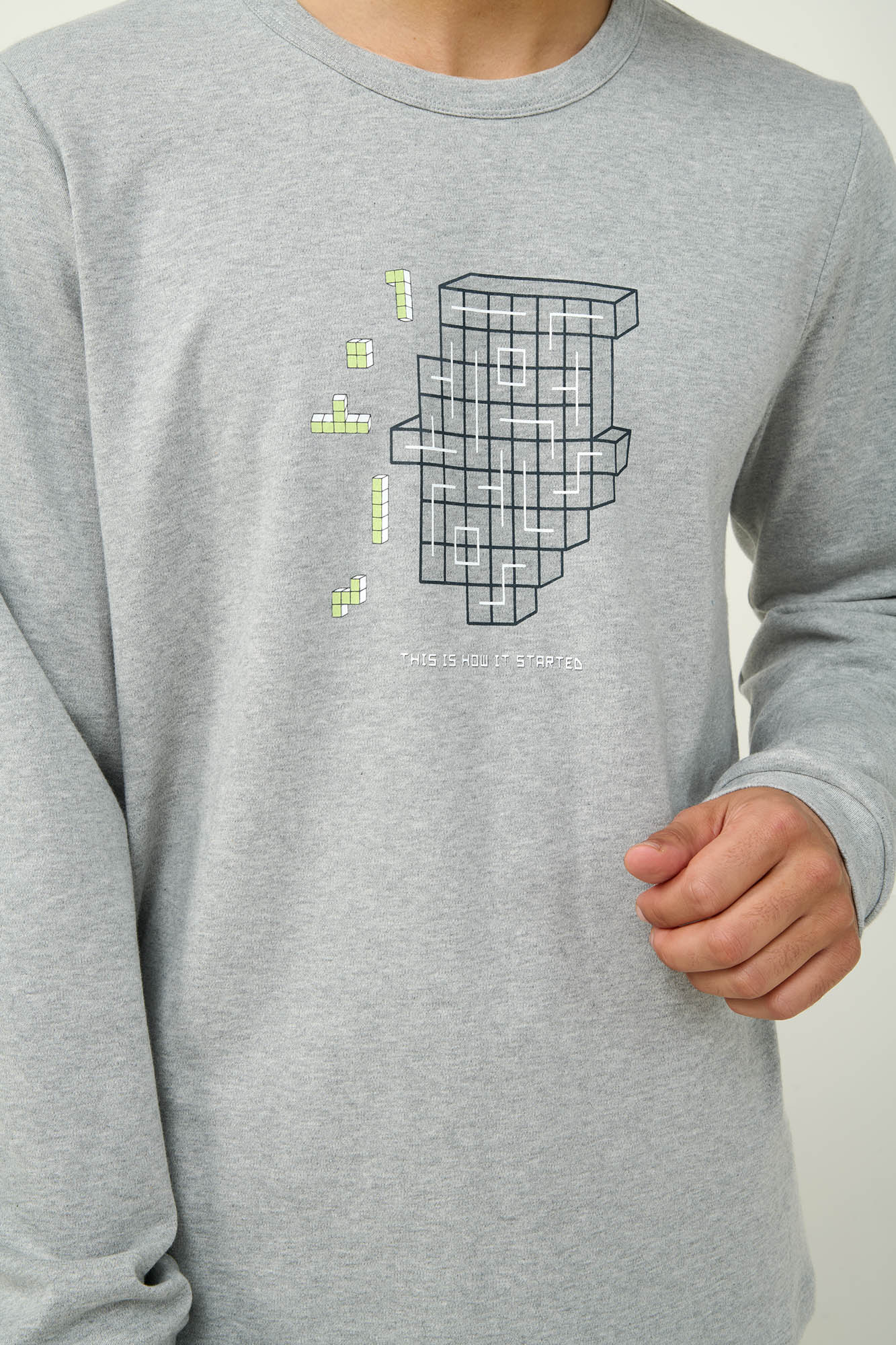 Επιλέξτε ένα σετ ανδρικές χειμερινές πυτζάμες από απαλό και διαπνέον 100% βαμβάκι interlock. Το σετ περιλαμβάνει μπλούζα με στρογγυλή λαιμόκοψη, διακοσμημένο με γεωμετρικό σχέδιο στο στήθος και μανσέτες στα μανίκια για ένα άνετη εφαρμογή. Το παντελόνι με μανσέτες έχει έντονο γεωμετρικό μοτίβο λαβύρινθο, προσθέτοντας μια μοντέρνα νότα στην εμφάνιση σας. Ιδανικό για στιγμές χαλάρωσης και έναν άνετο ύπνο.