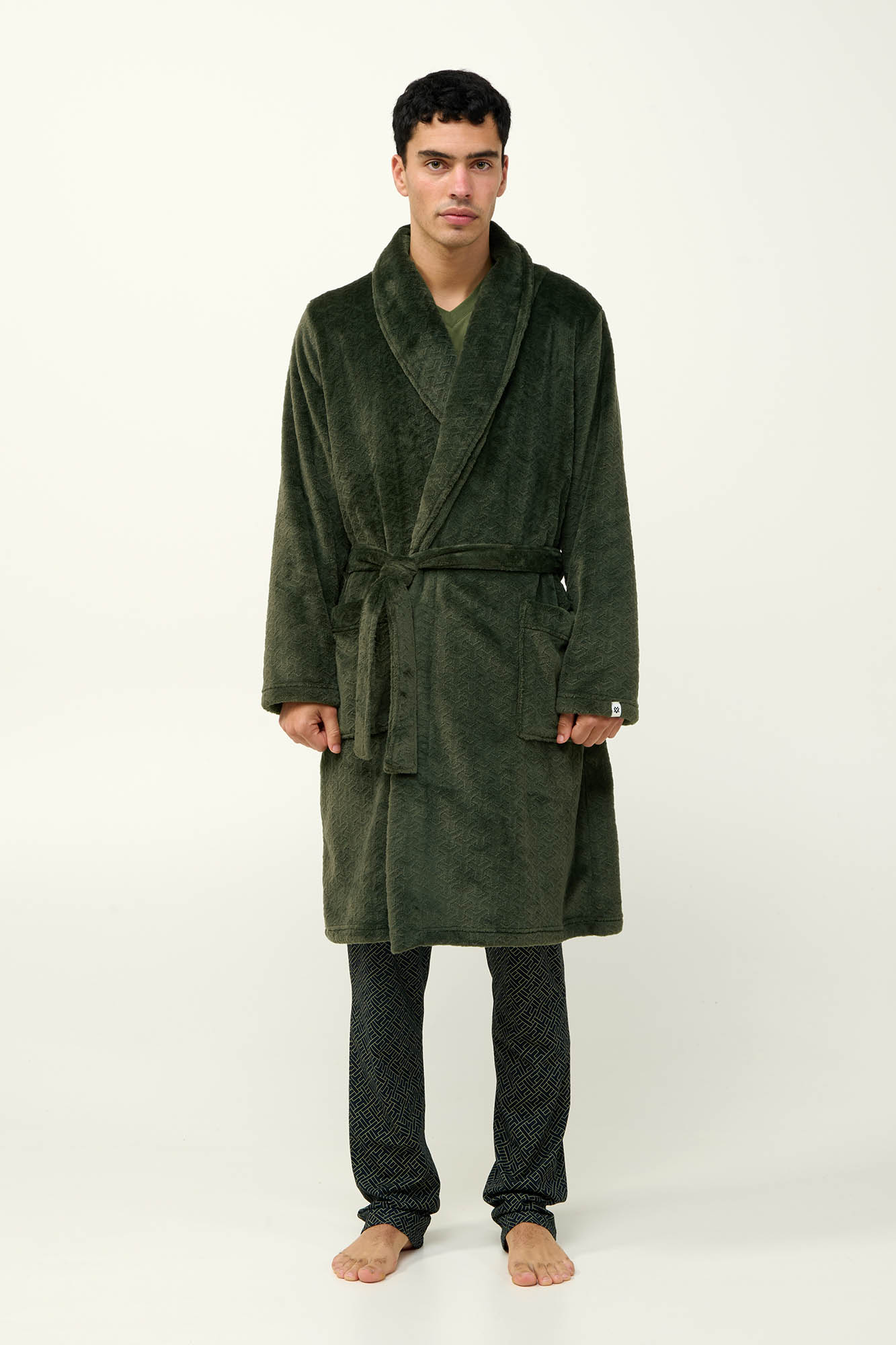 Προσθέστε στη γκαρνταρόμπα σας αυτή την ανδρική ρόμπα σε χειμερινή πράσινη απόχρωση, ιδανική για τις πιο κρύες μέρες. Είναι φτιαγμένη από απαλό και ζεστό fleece, με κλασικό σταυρωτό σχέδιο που δένει στη μέση με ζώνη για άνεση και σταθερότητα. Οι πρακτικές πλαϊνές τσέπες προσθέτουν ευκολία στην καθημερινότητά σας. Ένα διαχρονικό κομμάτι, ιδανικό για να το φορέσετε πάνω από τις πυτζάμες σας και να απολαμβάνετε κάθε στιγμή στο σπίτι.