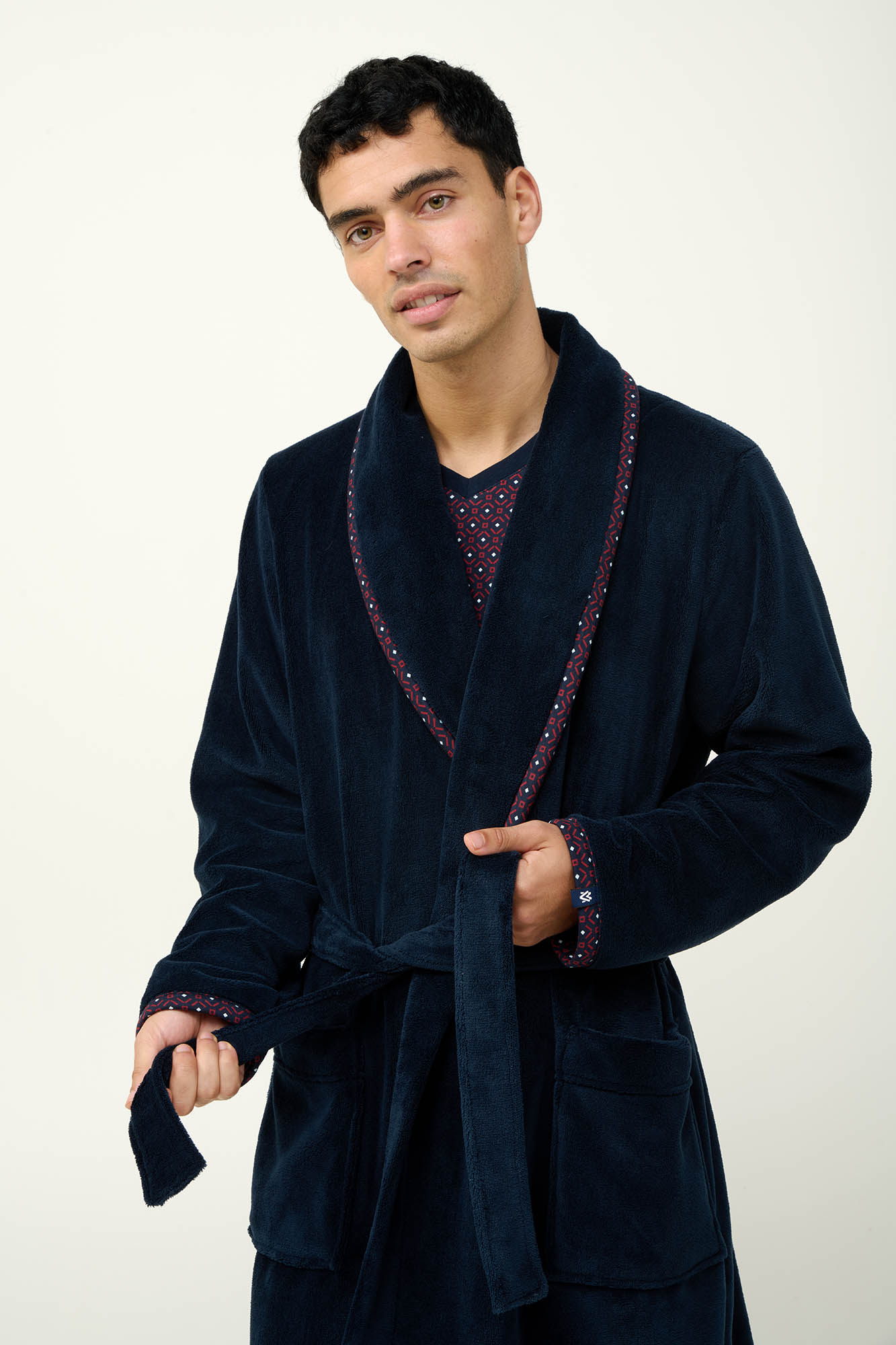 Επιλέξτε μια διαχρονική σταυρωτή ανδρική ρόμπα για να συνοδέψετε τις αγαπημένες σας πυτζάμες. Ένα κλασικό σχέδιο που κλείνει με ζώνη μπροστά, με πέτο και πρακτικές τσέπες που σας επιτρέπουν να έχετε κοντά σας προσωπικά αντικείμενα. Κατασκευασμένη από εξαιρετικά απαλό στο σώμα fleece θα σας κρατήσει ζεστό και θα σας βοηθήσει να απολαύσετε ένα όμορφο πρωινό ή ένα χαλαρό απόγευμα.