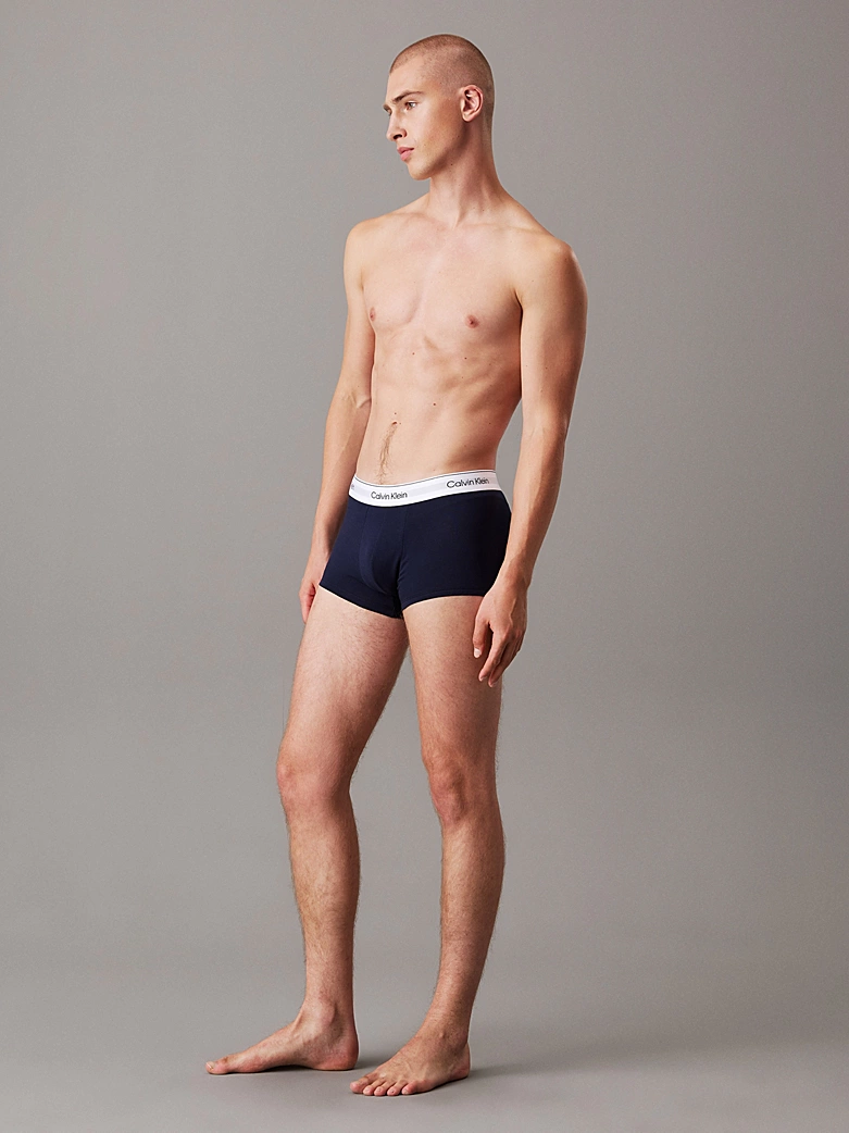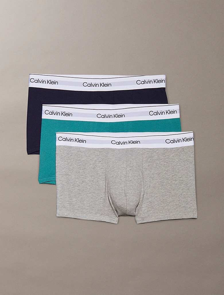 Μποξεράκια Calvin Klein σε συσκευασία 3 τεμαχίων. Μπλέ - πράσινο - γκρί με λευκό λάστιχο.