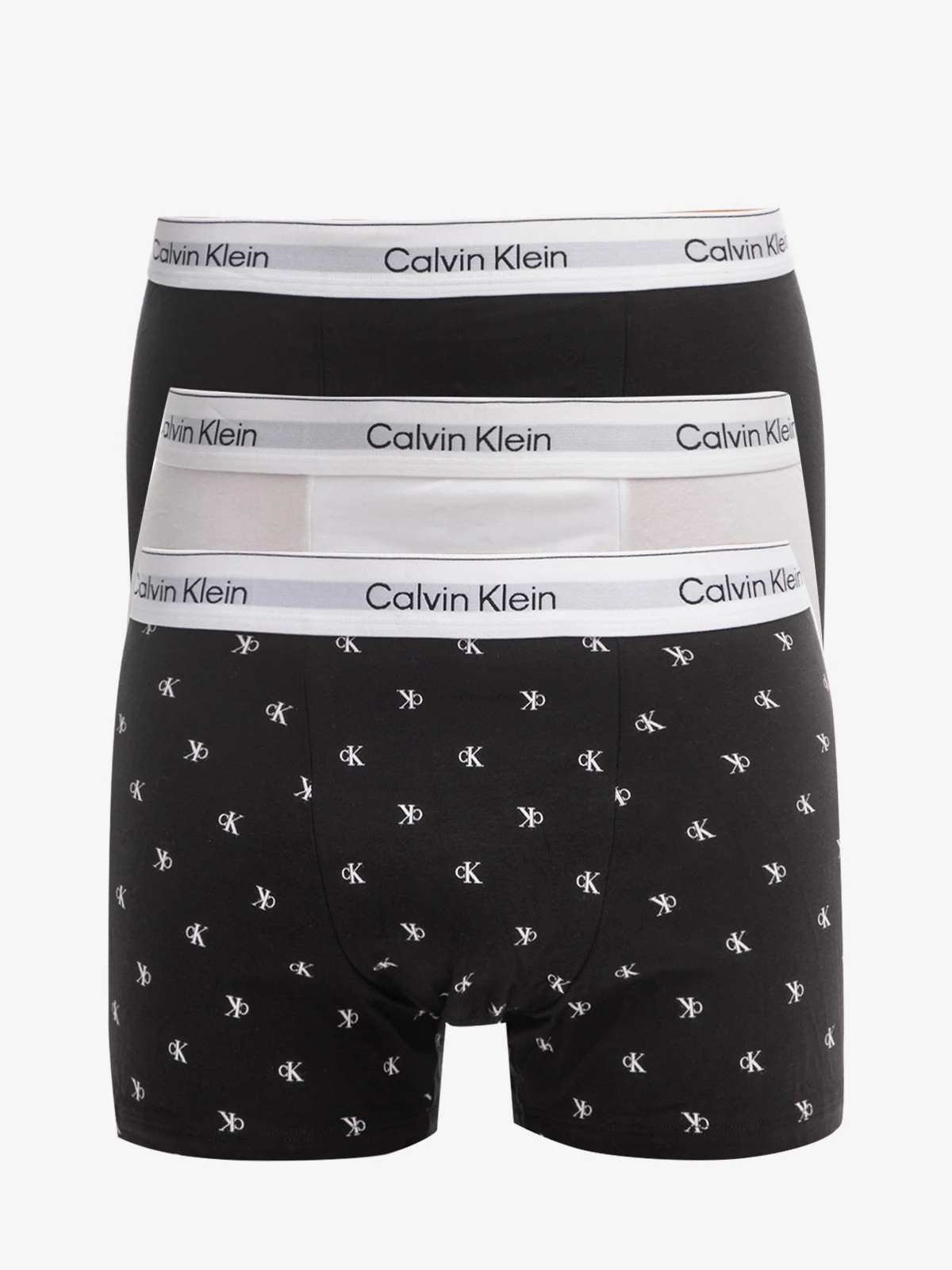 Μποξεράκια Calvin Klein σε συσκευασία 3 τεμαχίων. Μαύρο - Λευκό - Μαύρο all over print ck με λευκό λάστιχο.