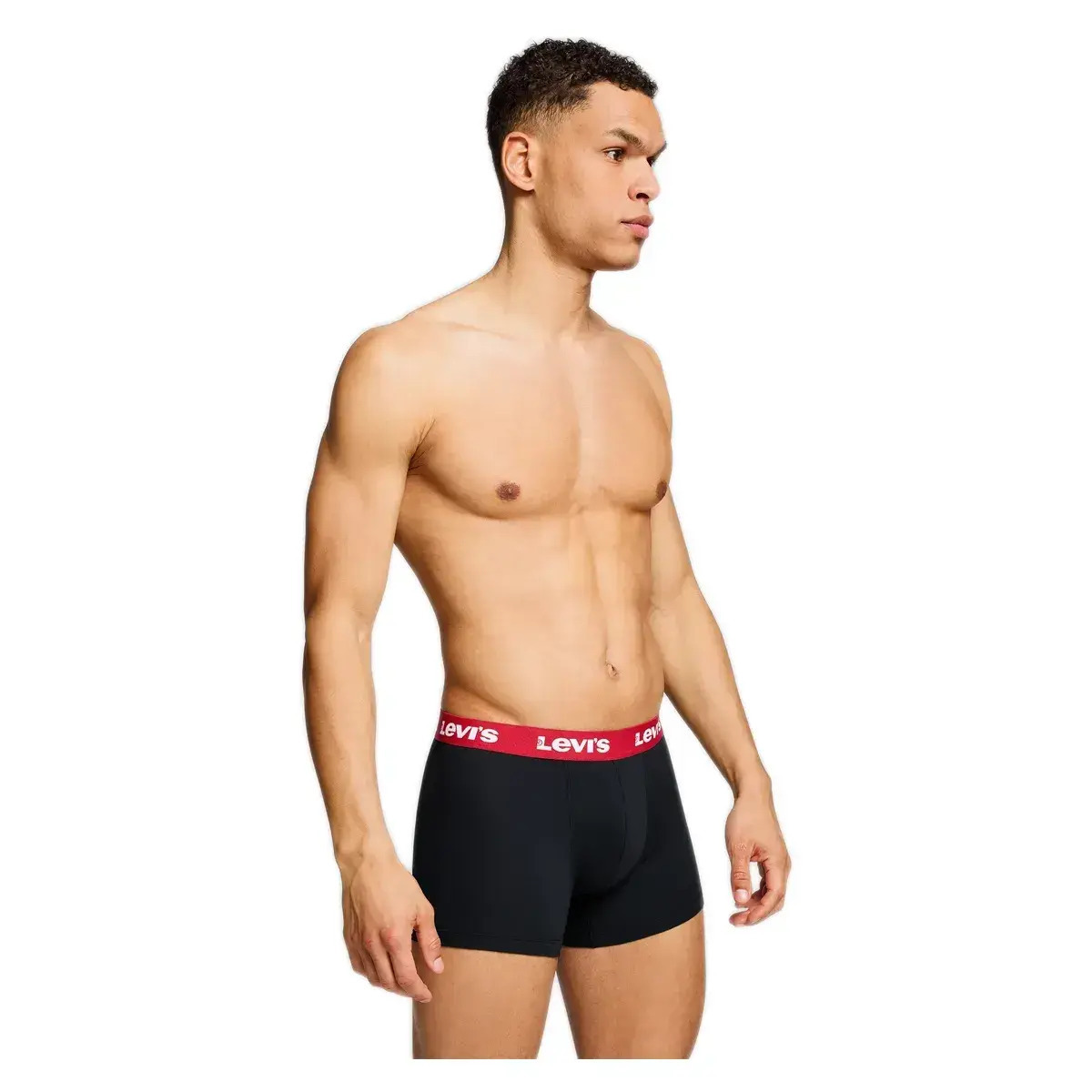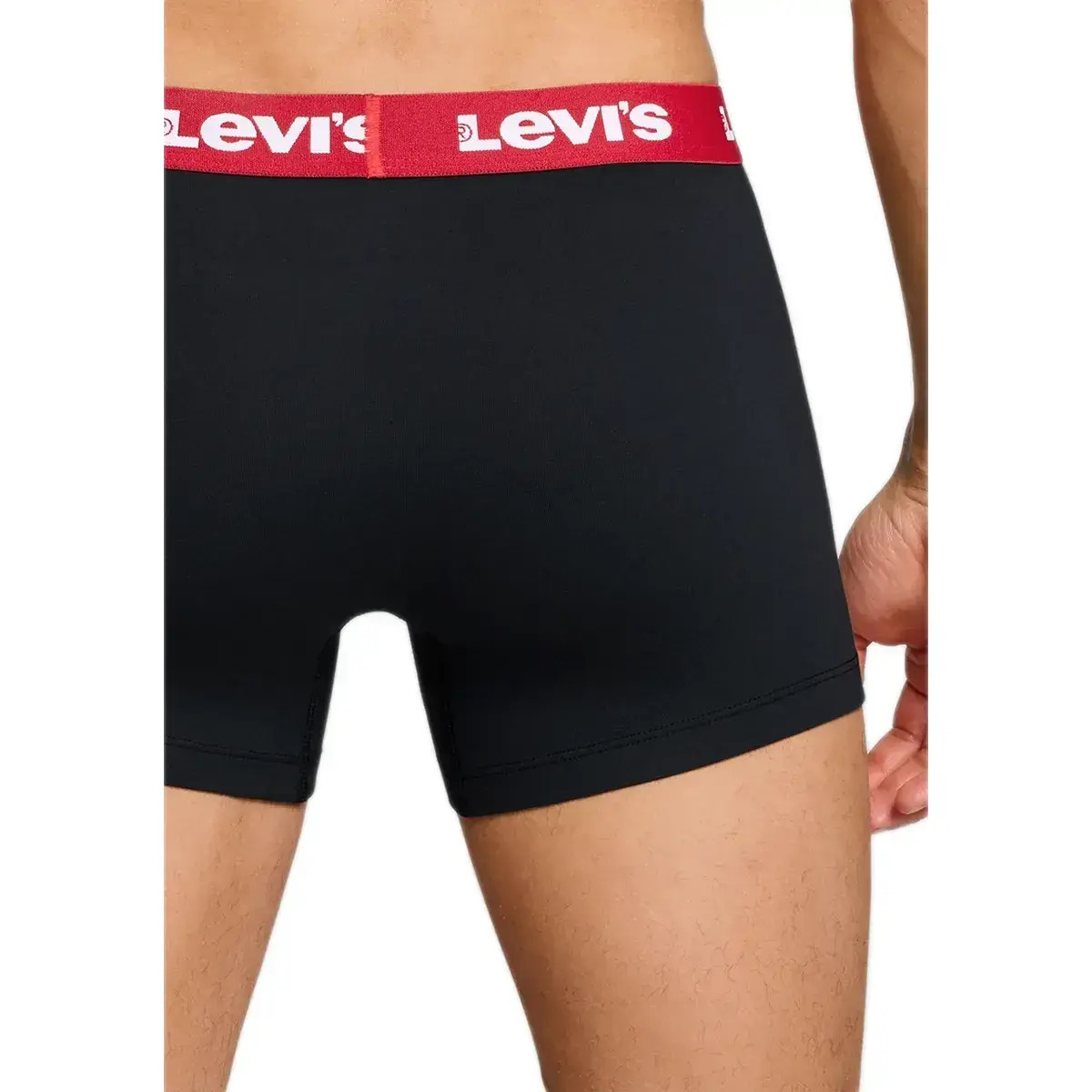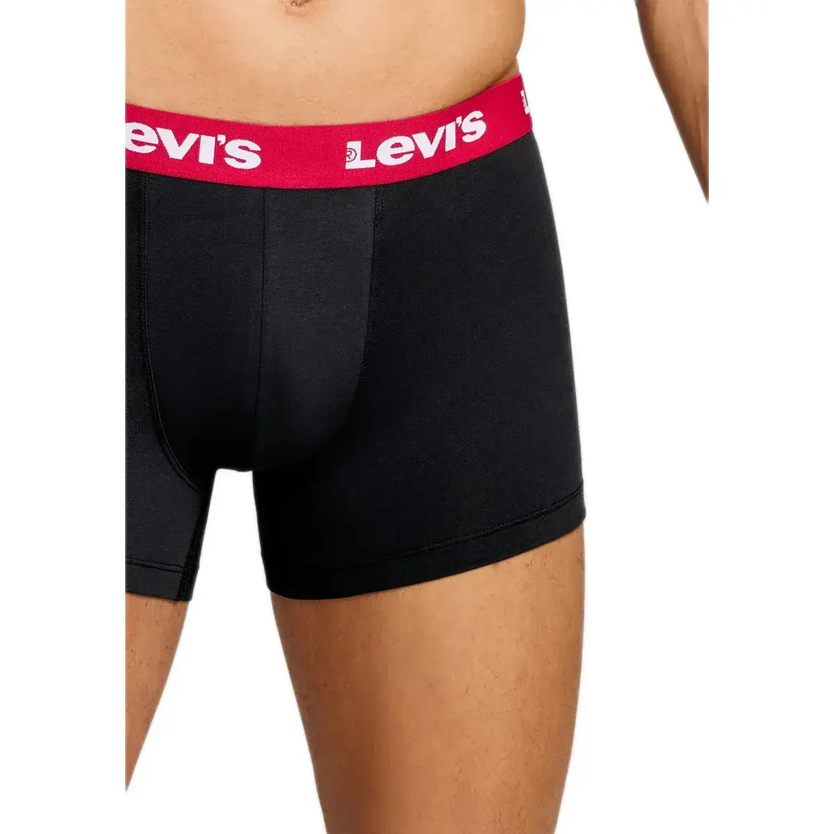 Ανδρικό boxer Levi's Comfort μαύρο. Το μπόξερ διαθέτει κόκκινο μαλακό λάστιχο, διακοσμημένο με το logo Levi's. Κατασκευασμένο από υψηλής ποιότητας ύφασμα, πολύ μαλακό και ελαστικό που προφέρει άψογη εφαρμογή και άνεση κινήσεων.