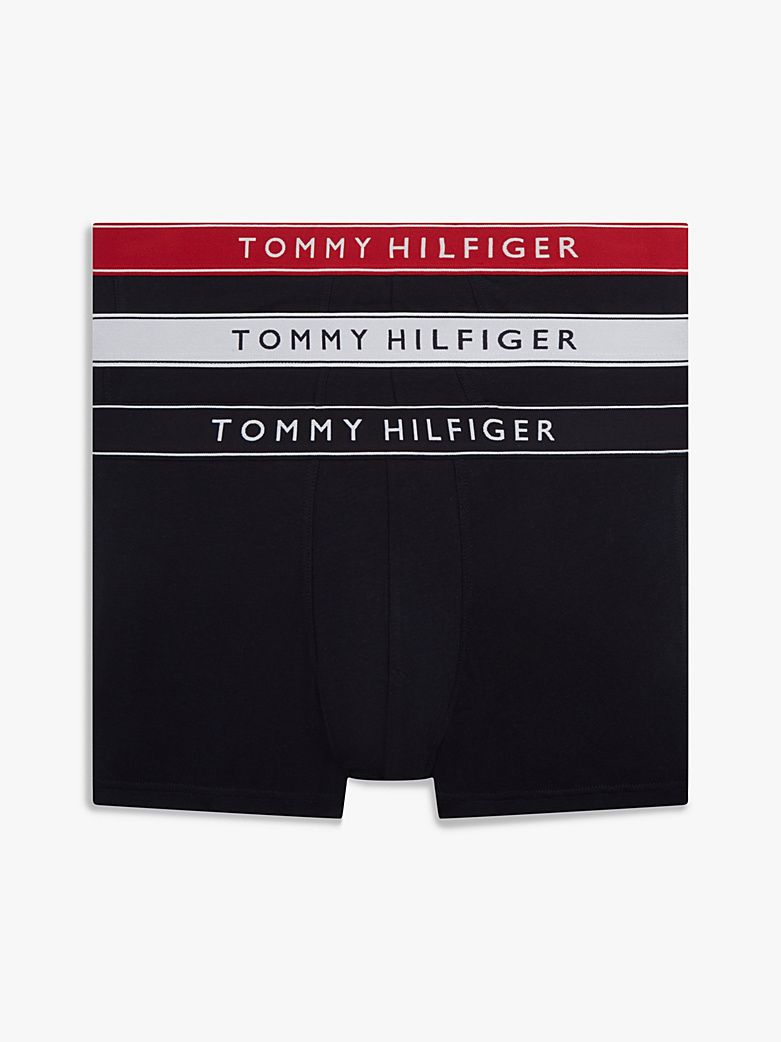 Ανδρικό Μαύρο boxer Tommy Hilfiger set 3 τεμαχίων. Εμπλουτίστε τη συλλογή εσωρούχων σας με αυτό το σετ από 3 βαμβακερά μπόξερ με φαρδύ εξωτερικό λάστιχο, σε τρία χρώματα, διακοσμημένο με λευκό logo Tommy Hilfiger περιμετρικά.