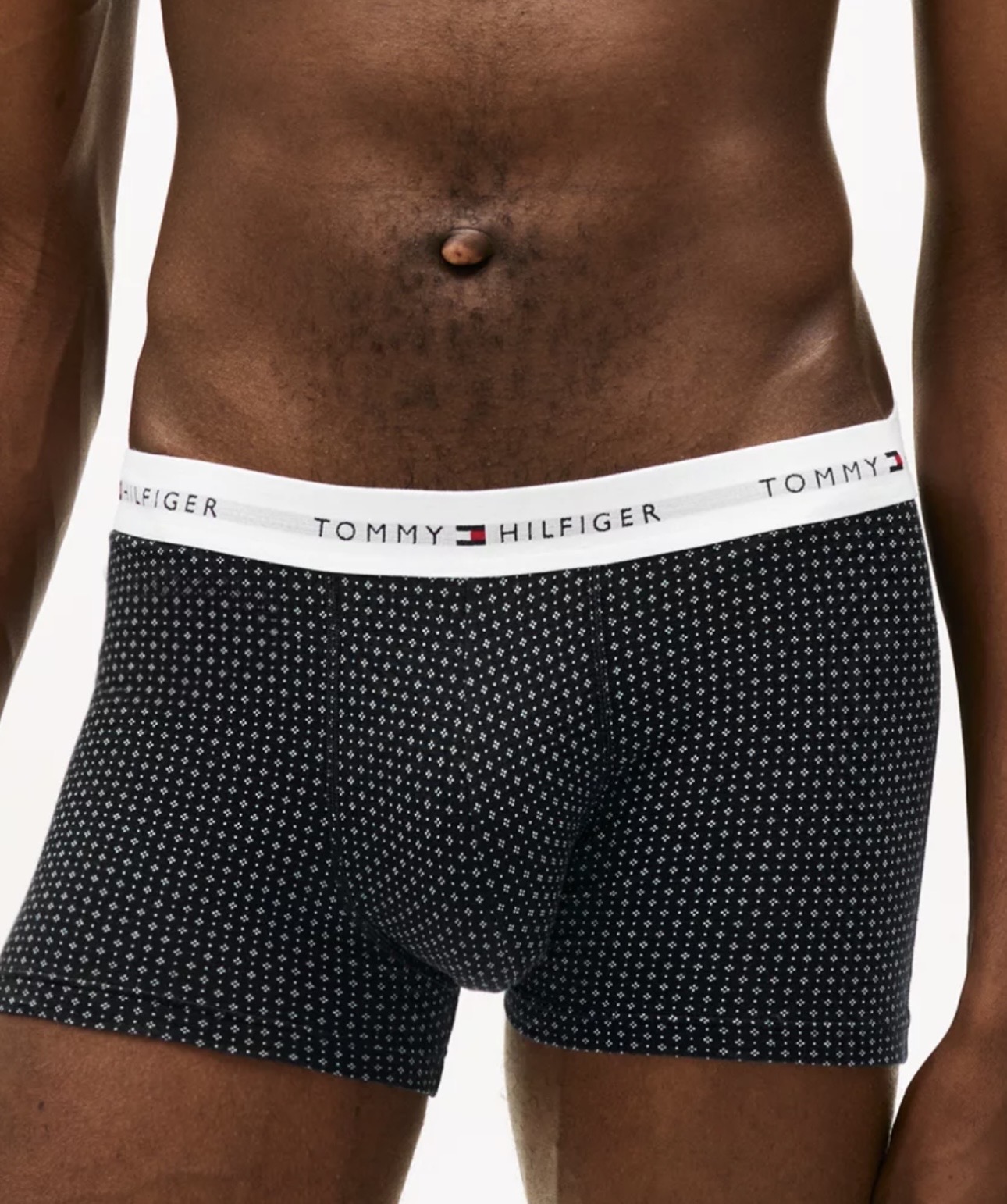 Ανδρικό Μαύρο boxer Tommy Hilfiger set 3 τεμαχίων. Εμπλουτίστε τη συλλογή εσωρούχων σας με αυτό το σετ από 3 βαμβακερά μπόξερ με φαρδύ εξωτερικό , λευκό λάστιχο, σε μαύρο χρώμα τα 2 και το 1 εμπριμέ , διακοσμημένο με μαύρο logo Tommy Hilfiger περιμετρικά.