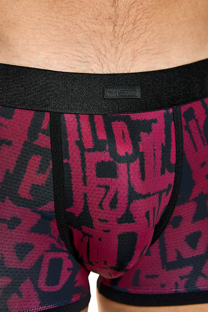 MED Ανδρικό Boxer LYAN - Cherry / Black Print - Mε φαρδύ εξωτερικό λάστιχο , κατασκευασμένο από υψηλής ποιότητας ύφασμα φιλικό προς το δέρμα. Boxer σχεδιασμένο να προφέρει άνεση και εξαιρετική εφαρμογή, με φαρδύ εξωτερικό, γυαλιστερό λάστιχο, διακοσμημένο με μαύρο logo MED.